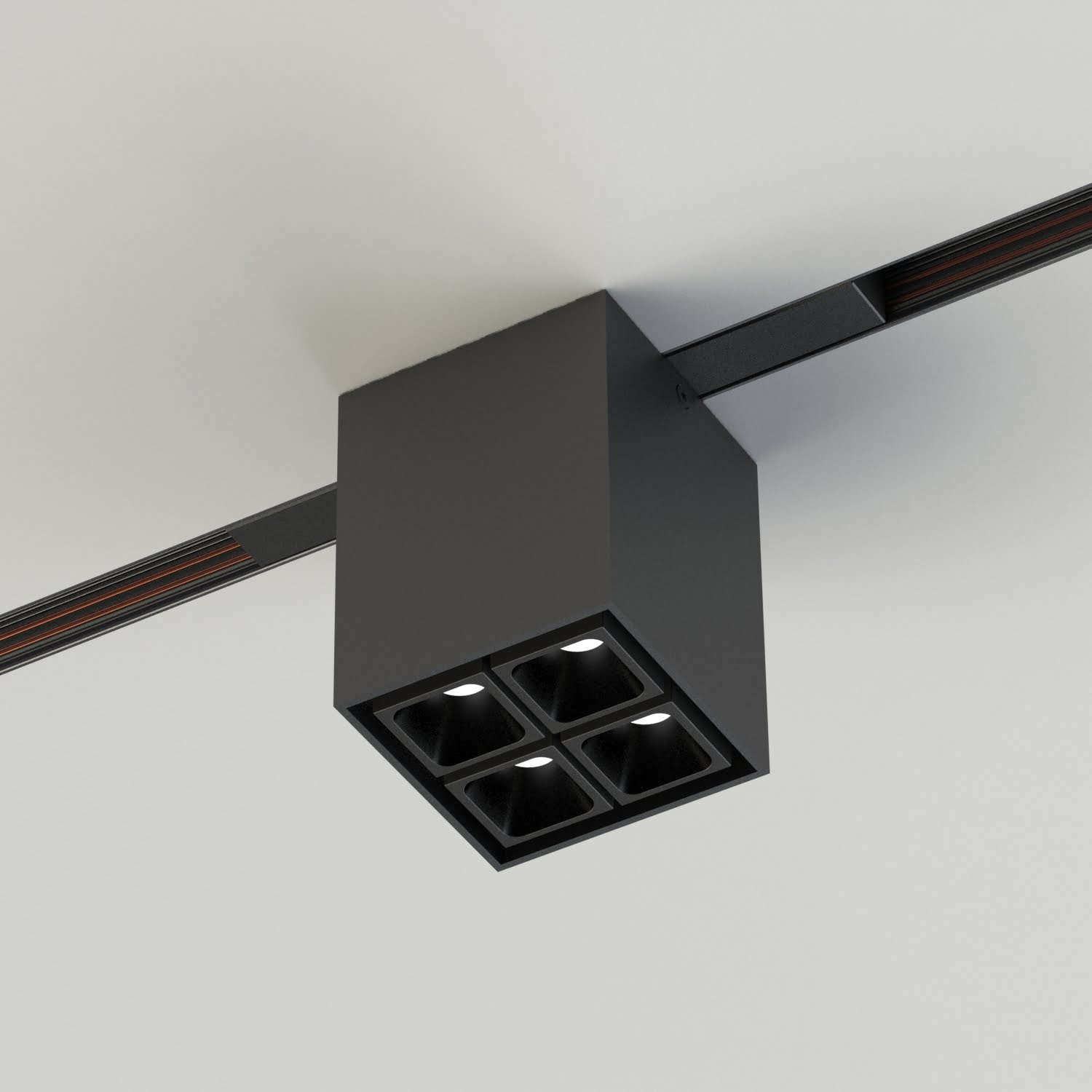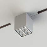 Collezione di apparecchi per un’illuminazione a binario 24V/48V. Apparecchi a luce diretta. Disponibili in versione da binario a soffitto o in versione per bianario da incasso per un'installazione filo muro. Corpo a sezione quadrata in estruso di alluminio in finitura verniciata. Grado di protezione IP20.
