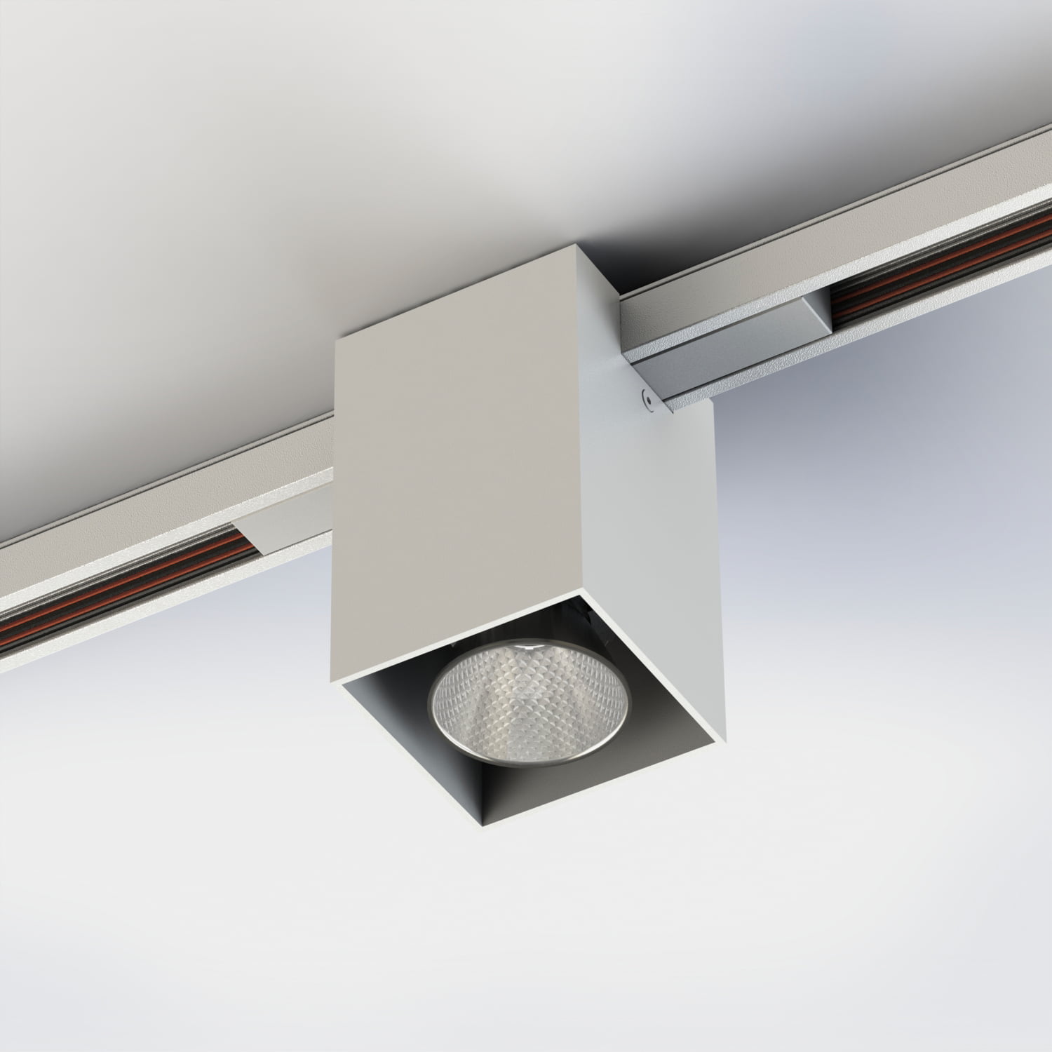 Collezione di apparecchi per un’illuminazione a binario 24V/48V. Apparecchi a luce diretta. Disponibili in versione da binario a soffitto o in versione per bianario da incasso per un'installazione filo muro. Corpo a sezione quadrata in estruso di alluminio in finitura verniciata. Grado di protezione IP20.