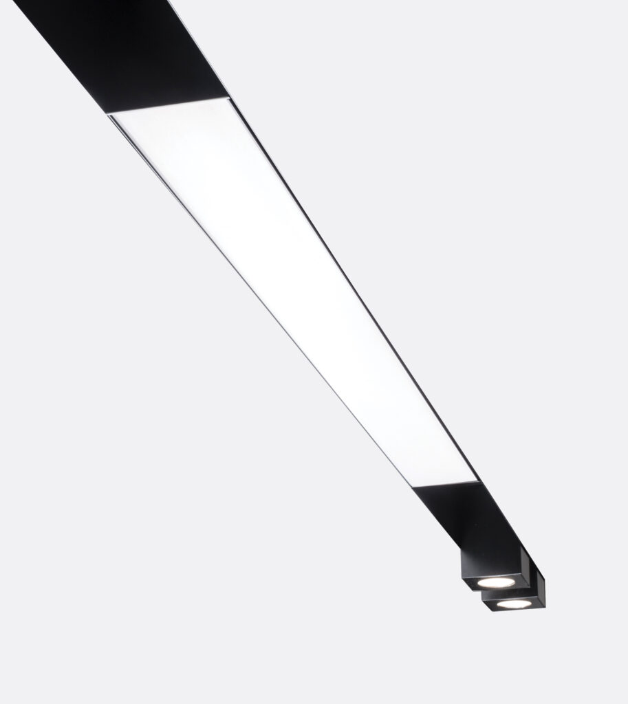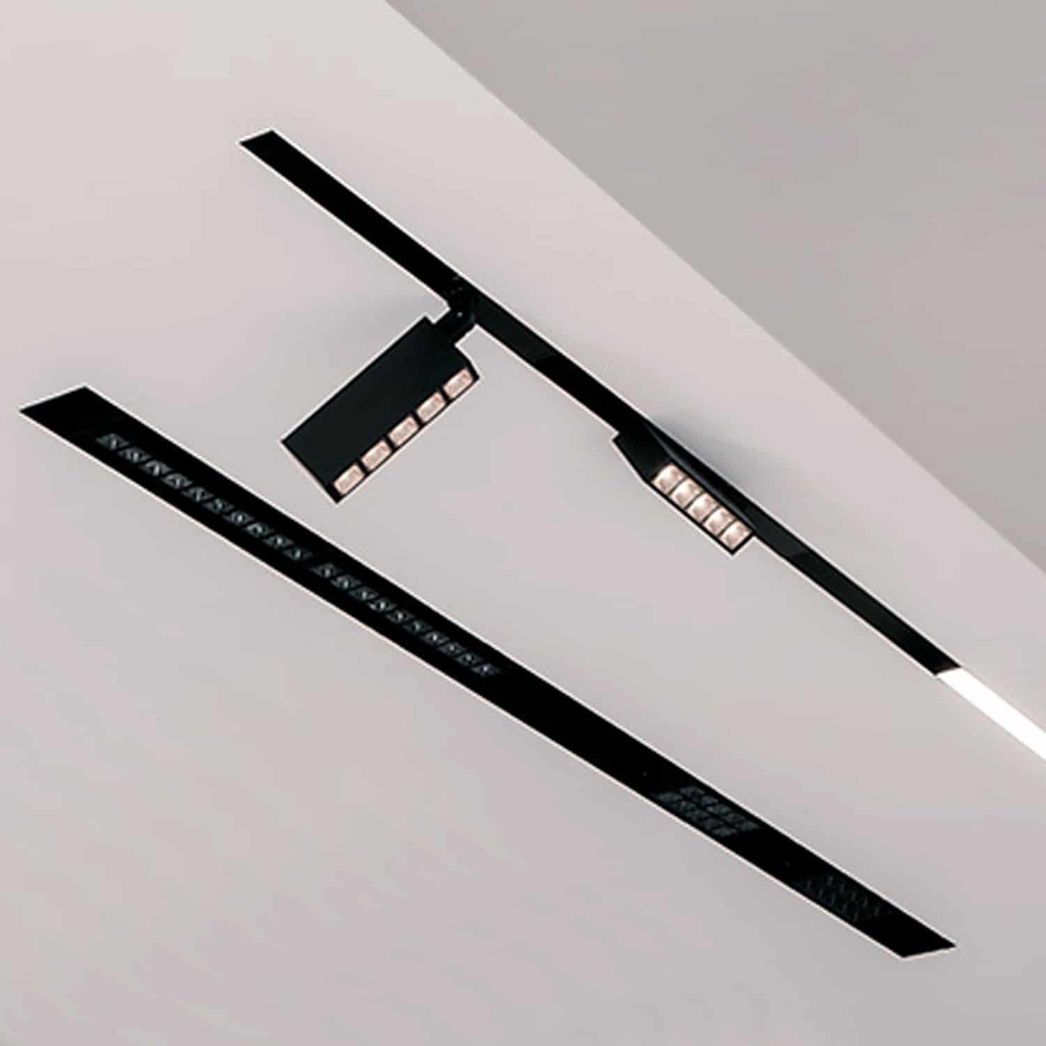 Trimless recessed modular systems for housing the system and finished modules of the following families: MINIFLE, FILE or FILE2, FILE 2 Complementi, LEVA and FARETÈN. Body in painted or anodized extruded aluminum of predefined length or cut to size. To be completed with closing heads and with closing plates for the empty areas in recessed position to determine a full and empty effect. LED linear sources, to be completed with Opal polycarbonate diffuser and remote power supplies, are available to realize project with backlit light effect.
