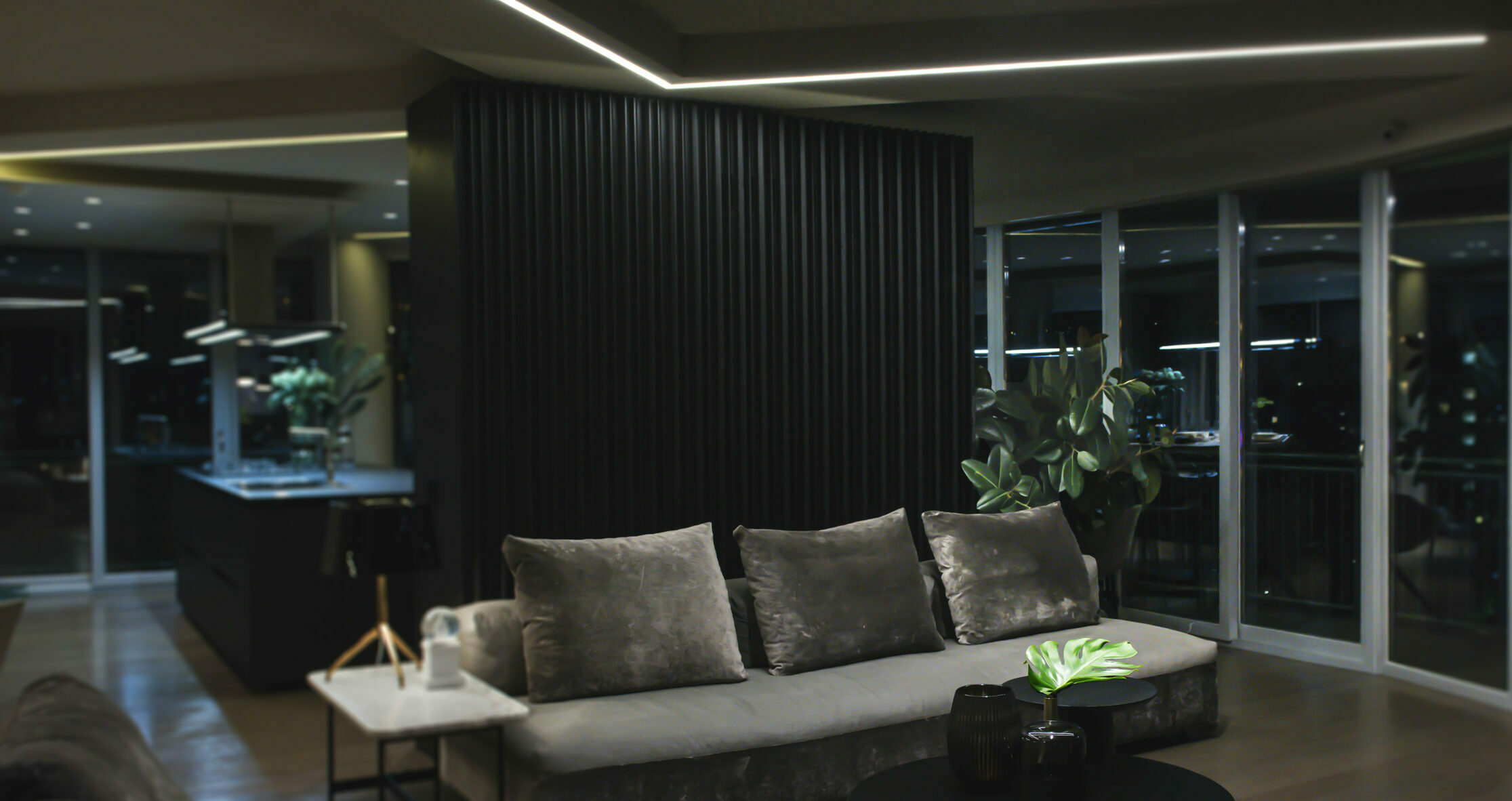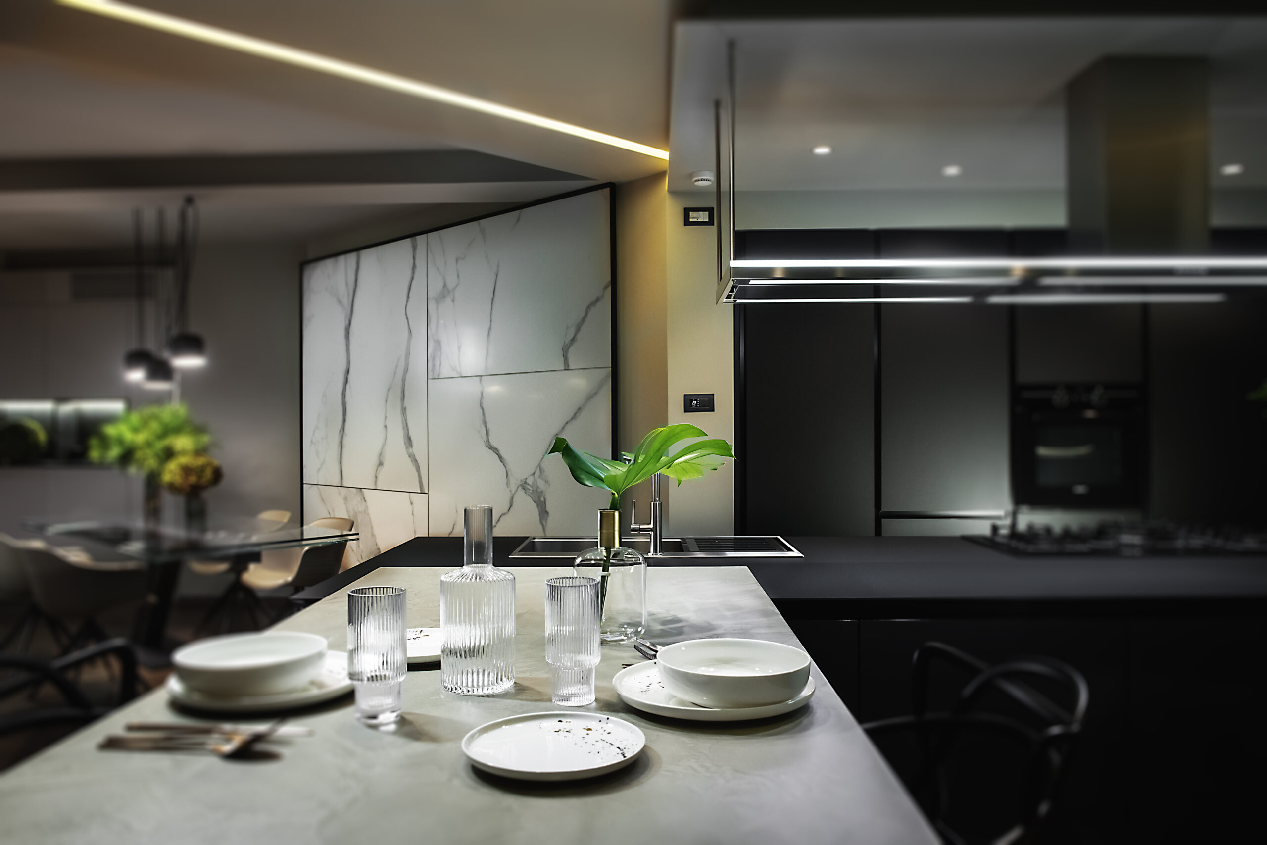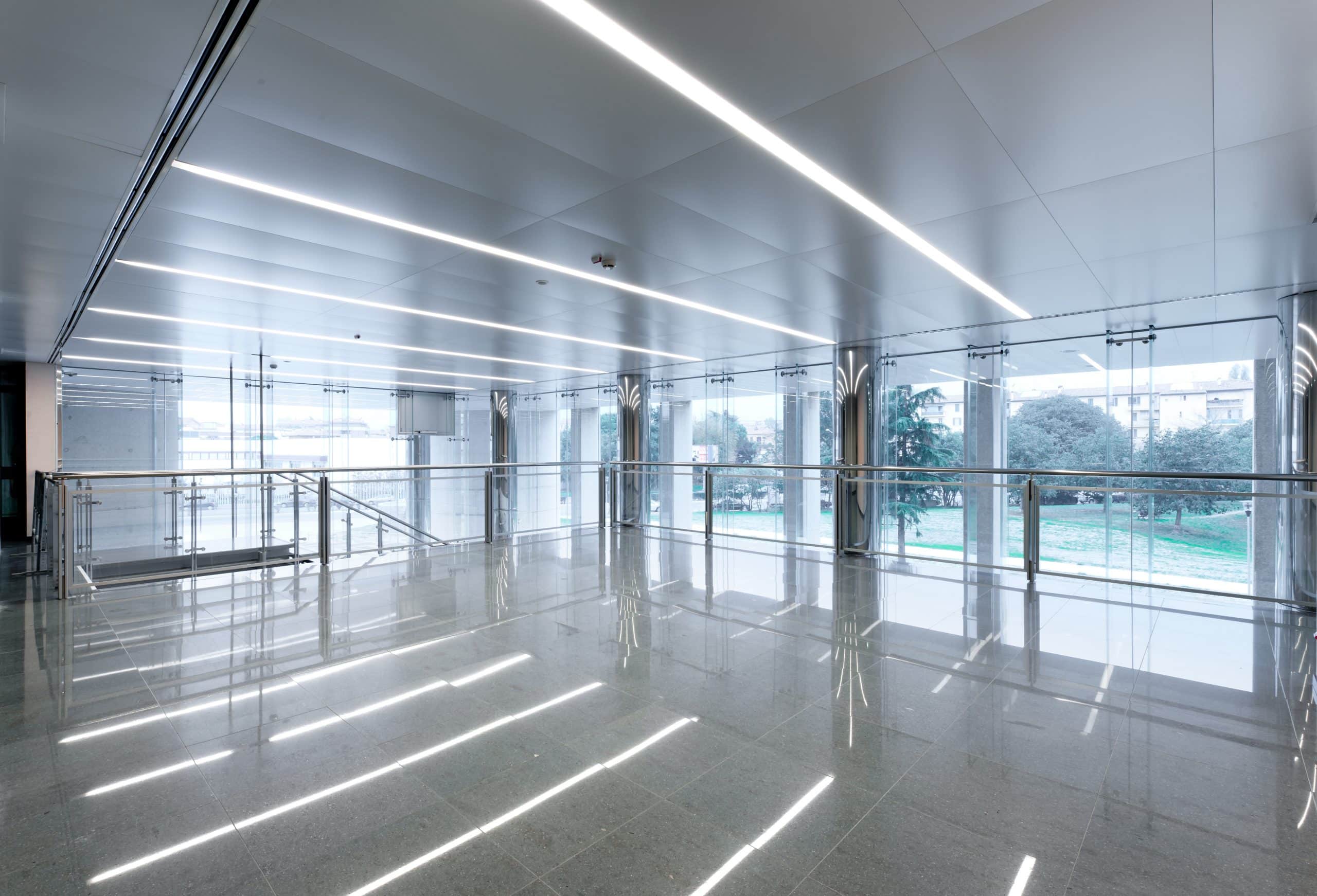 Modular system for direct, diffused and/or accent lighting, consisting of hollow profiles made from 66×40 mm painted or anodised extruded aluminium, with a predefined length or cut to measure, available in the following versions: wall-mounted, ceiling-mounted, suspended ,recessed with a super-slim edge trim, just 5 mm wide (61.5 x 40 mm) and trimless recessed. To be integrated with LED linear light sources, battens for T16 fluorescent lamps, projectors with built-in LED source and max 16A 3-circuit track modules for inclusion of projectors. Fluorescent battens, complete with 50/60 Hz 230/240 V electronic power supply, LED batten driver included. To be completed with side end caps with Light Proof system, opal white or microprismatic PC diffusing screen (in accordance with EN 12464-1), closing profiles, with a predefined length or cut to measure, or dark-light aluminium grille with high specular qualities and mounting brackets or suspension cables. IP40 protection rating.