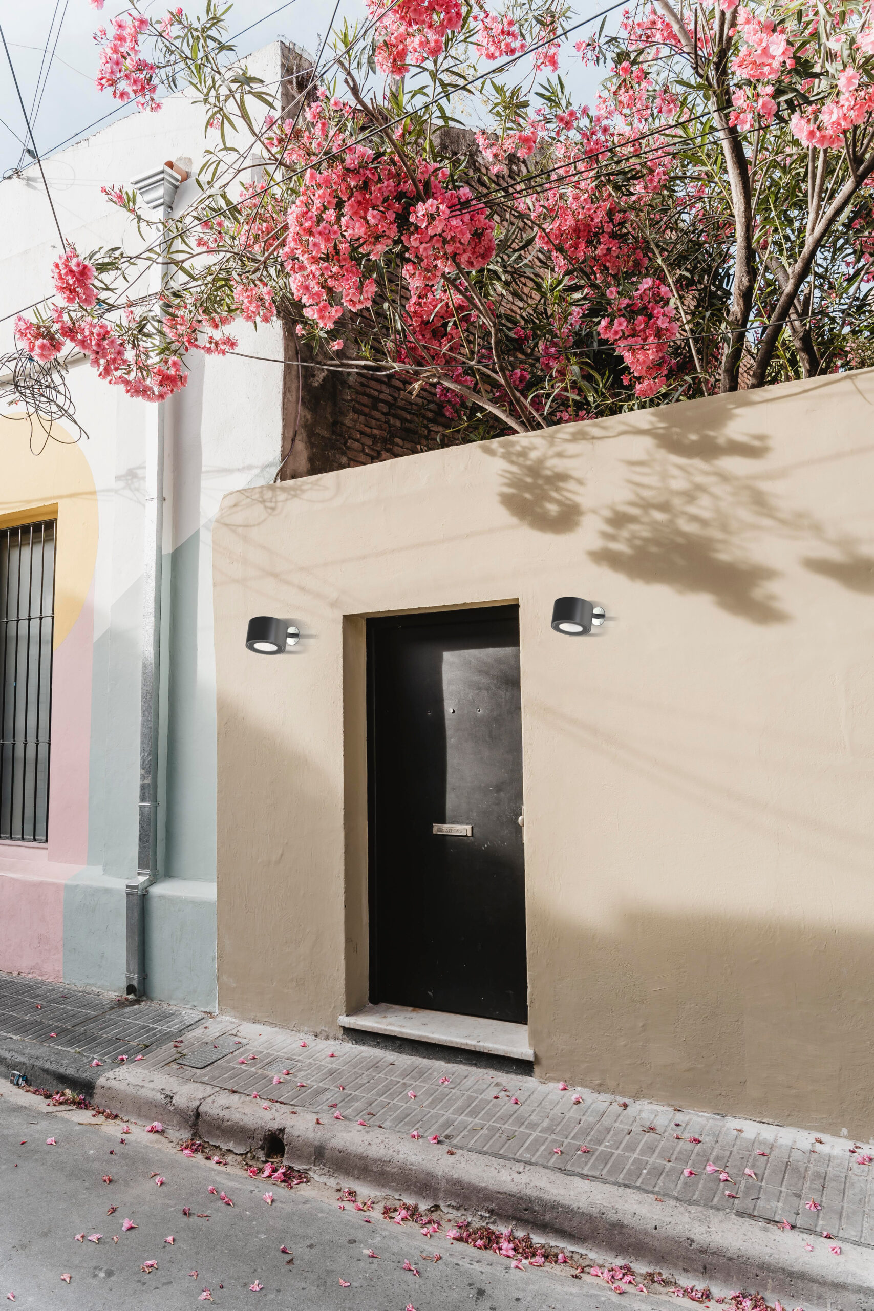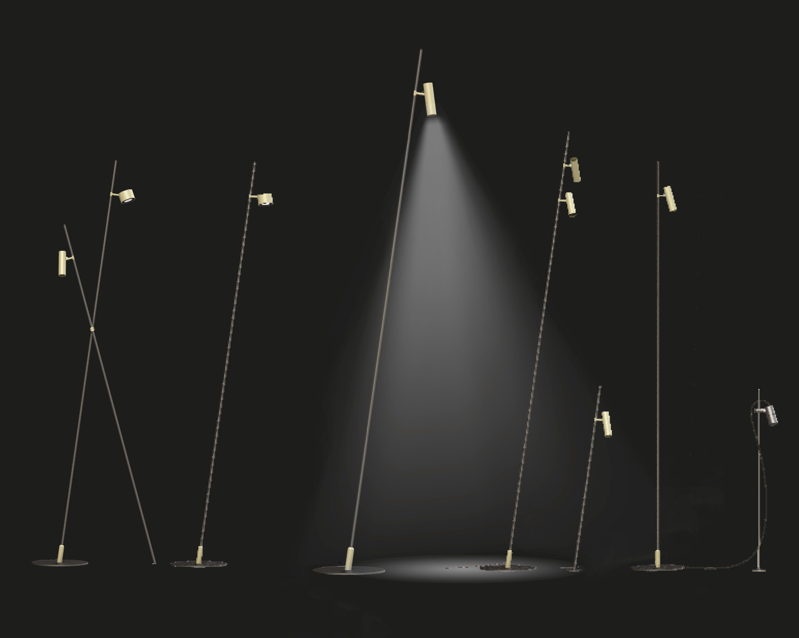 Family of outdoor floor or wall luminaires, available in finished modules or in a modular system for maximum customization. Versions with LED source projectors for accent light are available. Poles of different heights from 700mm to 3000mm are available, to be combined with spots of 6.7W or 18W. Fixing base or possibility to install in different surfaces: flange for wooden surfaces, clamp for concrete and stake for ground. IP54.
