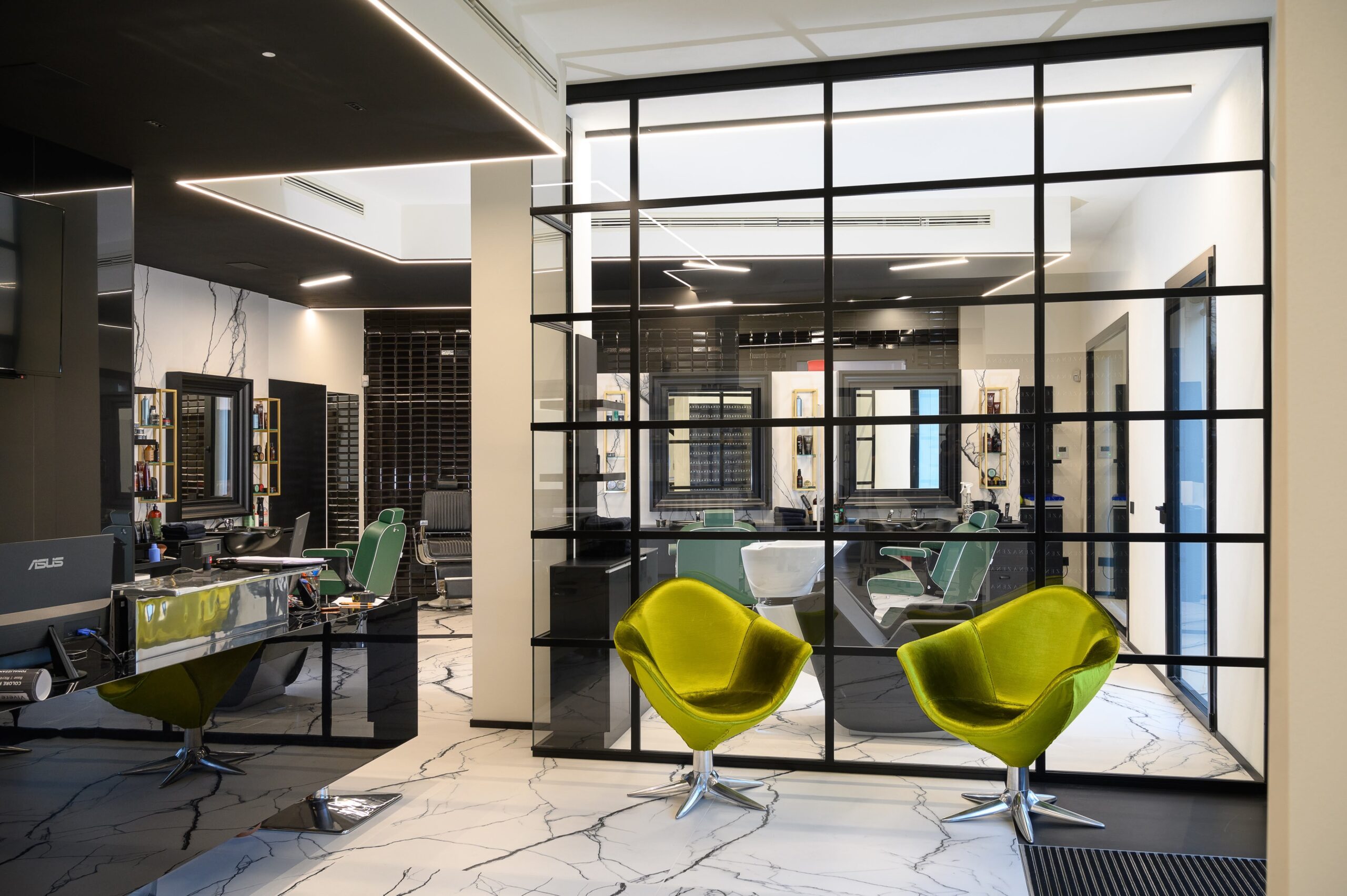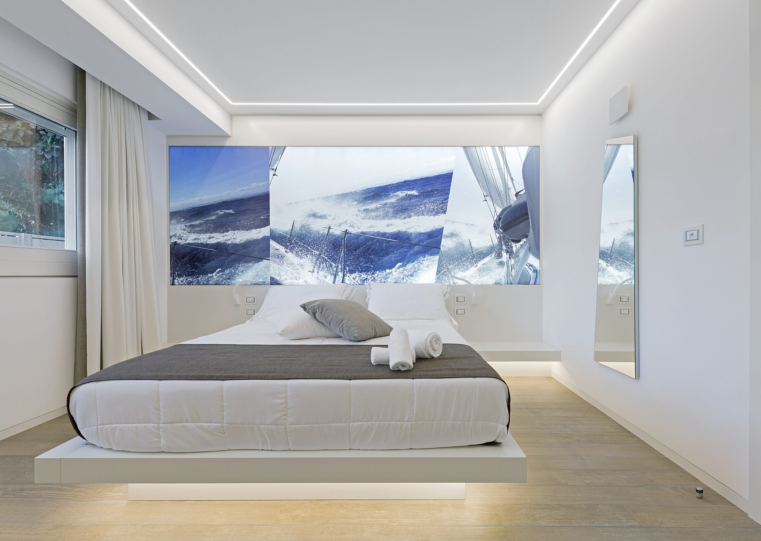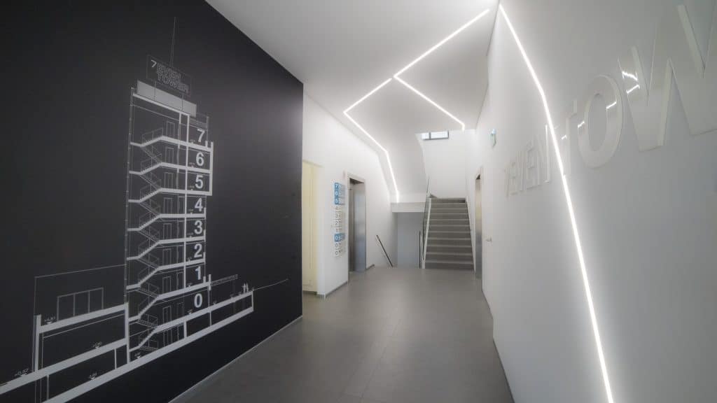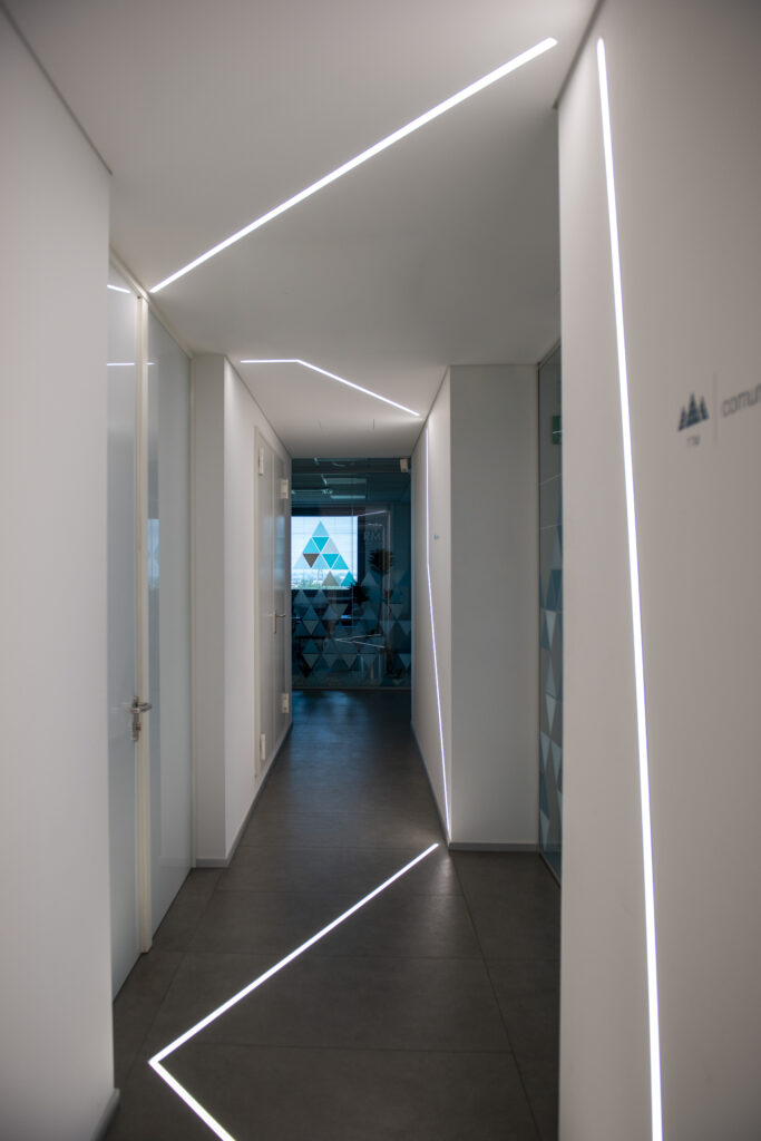 Modular system for direct, diffused and/or accent lighting, made of painted or anodised extruded aluminium empty profiles, available in predefined lengths or cut to measure. Available in wall-mounted, ceiling-mounted, suspended, trimless recessed or to be trimless-recessed in external and internal angles. For direct diffused lighting. Body in extruded aluminium. Painted or anodized finish. Complete with Light Proof system side end caps, opal white polycarbonate diffusing screen. and mounting brackets or suspension cables. Available in predefined lengths or cut to measure. To be integrated with linear LED sources . IP40 or 43 degree of protection according to the area where it is installed.