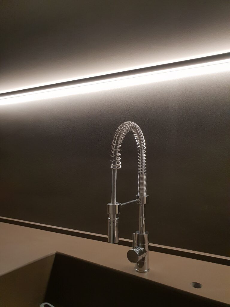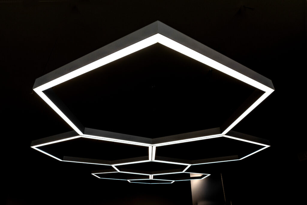Modular system composed of painted extruded aluminum profiles, for suspension and wall installation, available in predefined or customized lengths for direct diffused and double emission lighting. To be integrated with LED linear sources, closing heads with Light Proof system, diffusing screen in opal silicone, suspension cables and canopy. IP44.