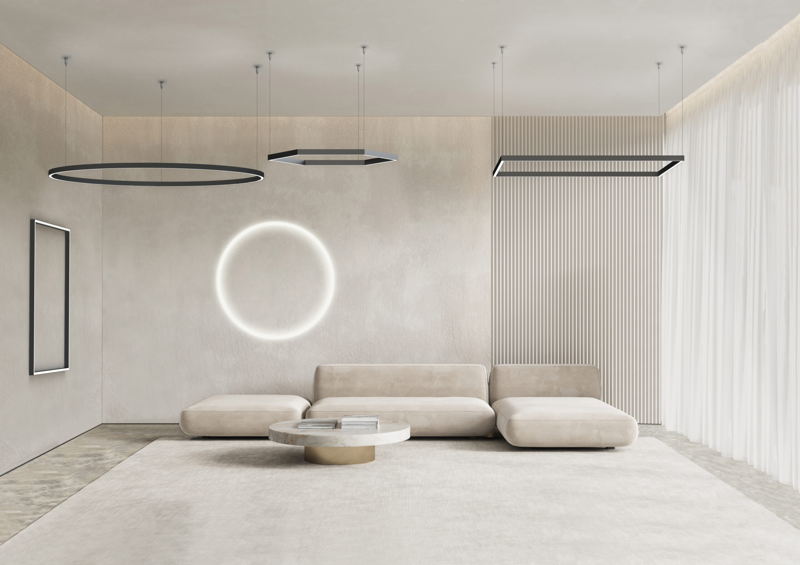Suspended, recessed, wall/ceiling lighting fixtures in extruded aluminum for direct or bi-emission diffused lighting of circular, square, rectangular or hexagonal shape complete with silicone screen. Integrated linear LED sources to be completed with 24Vdc remote power supply. IP44. Available default modules on demand and modular system.