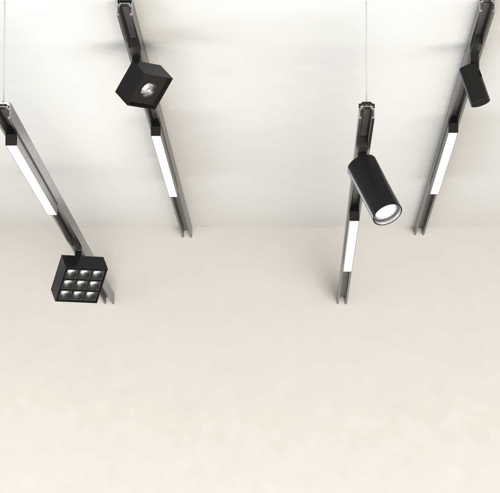 The Mini Track track is an electrified Class III-SELV track with two circuits: one for a low voltage 24/48V power supply and the other for the DATA BUS (DALI or 1-10V). The power supply voltage can be 24V or 48V, not exceeding 15°, depending on the models of lighting fixtures chosen. White and black finishes are available in the ceiling and suspended versions, while only the black finishing for the recessed option. The lighting fixtures can be used on both 24V or 48V electrified tracks, except the microfile family that requires only 24V. DALI dimmable spotlights are equipped with non-polarized converters that allow to be installed in any direction, and Hot Plug technology for safe insertion with live track.