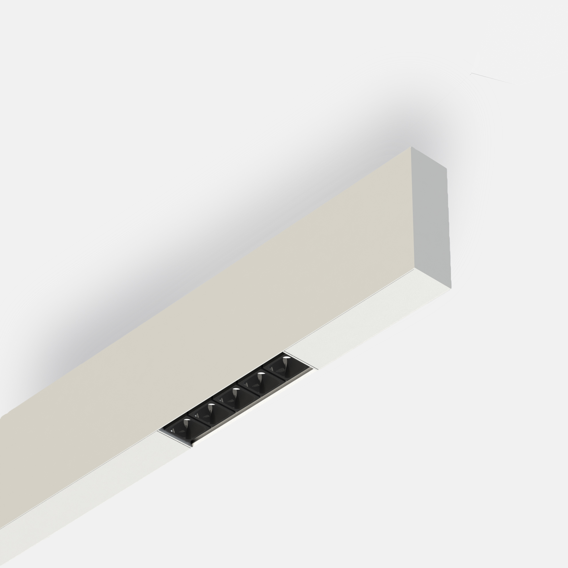 Profili in estruso di alluminio 66x40mm, per installazione a soffitto, a parete, a sospensione, incasso (trimless o con battuta) con sorgenti lineari led integrate, alimentatori elettronici integrati 230/240V. Disponibili versioni con gruppi ottici Leva con ottica fissa con aperture disponibili 20° - 32° - 50° - 41°x18° con emissione ad abbagliamento controllato <14. Le versioni a sospensione possono essere a… read more