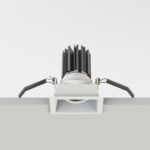 Apparecchi da incasso con battuta a sezione quadrata fissi o orientabili, con posizione lampada arretrata antiabbagliamento. Corpo ottico realizzato in pressofusione di alluminio, ottica in finitura alluminio 99,9%. Grado di protezione IP20/23. Disponibili anche con attacco GU10.