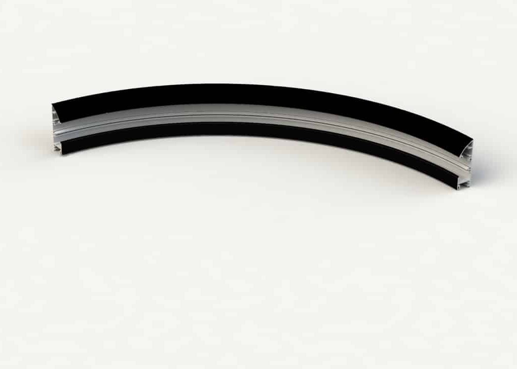 Famiglia di profili curvi in estruso di alluminio di 90 x 30 mm e raggi 367 mm - 517 mm - 667 mm, disponibili come moduli finiti in versione sospensione, plafone e incasso trimless circolari e applique ad arco, o da assemblare a sistema a plafone o sospeso di forma sinusoidale. Possibile scegliere tra emissione luminosa laterale interna o esterna… read more