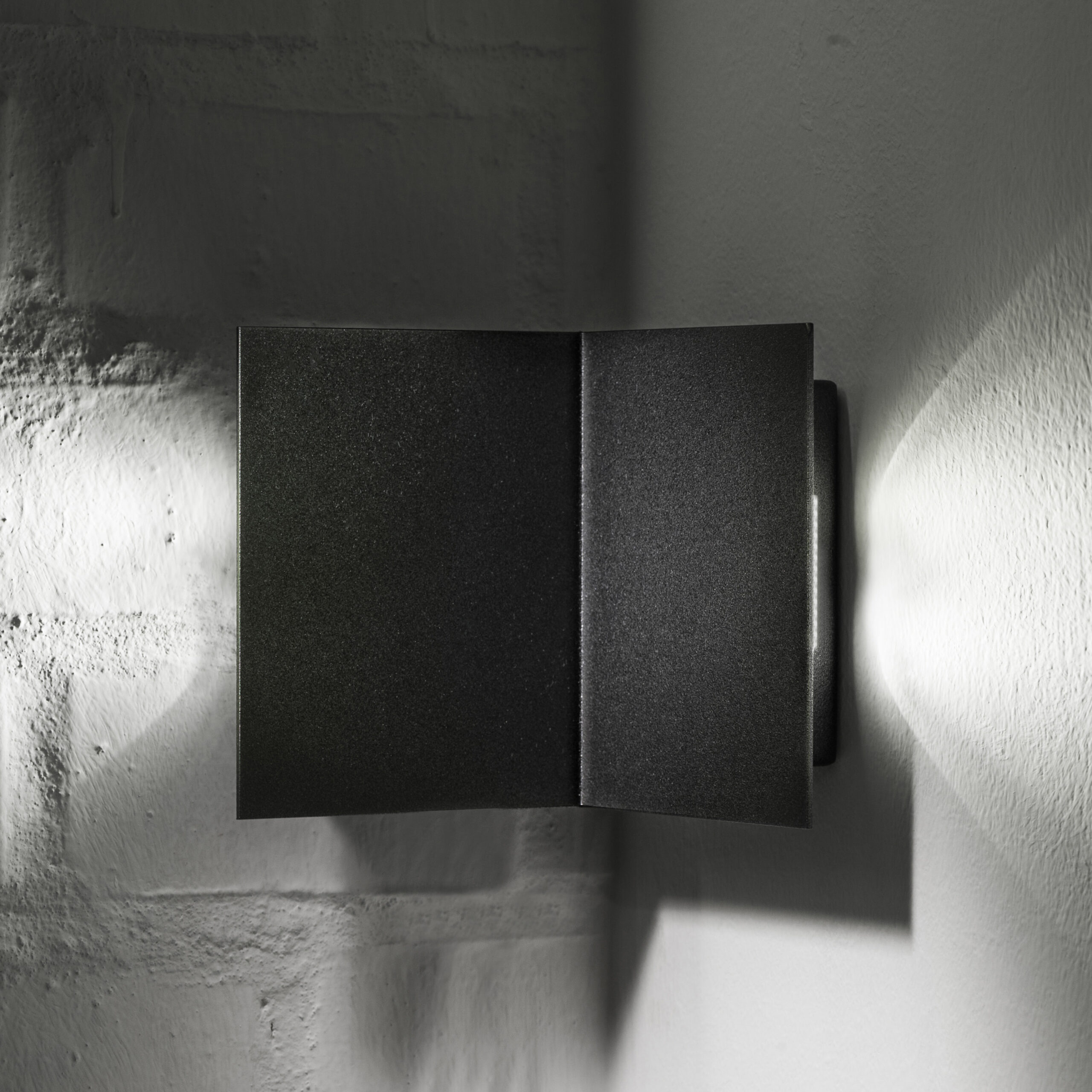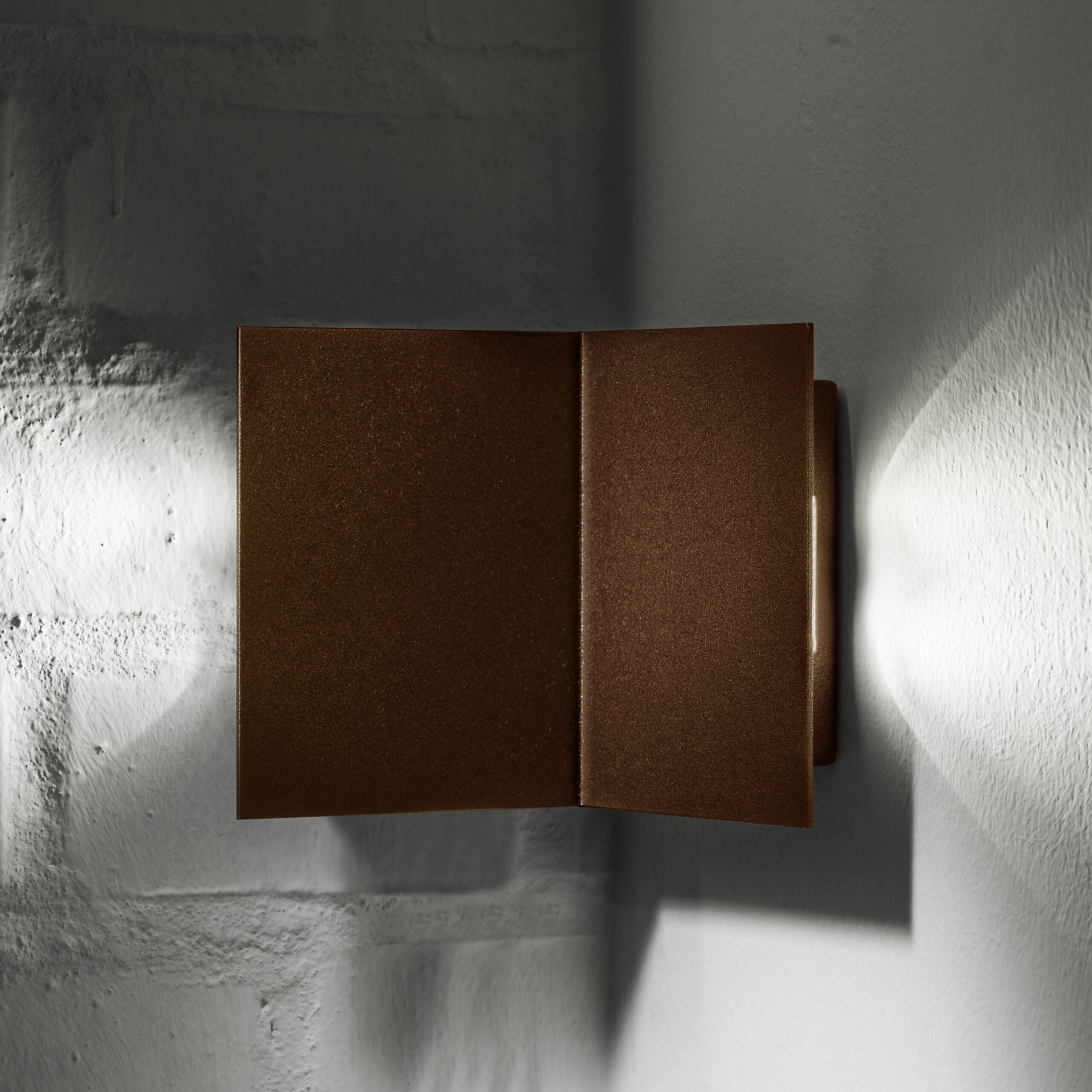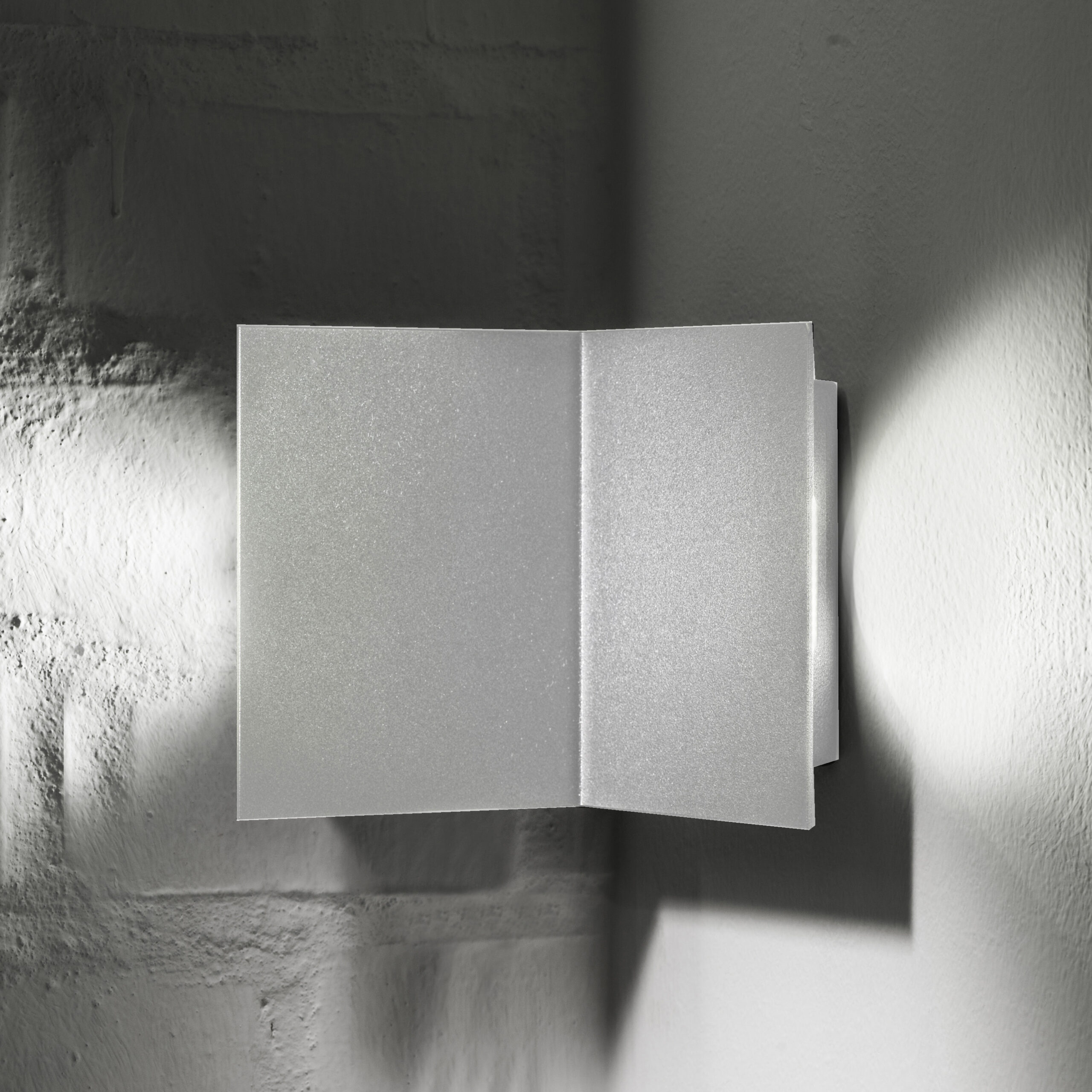 Indoor corner luminaire, bi-emission for accent lighting. Optical group complete with professional LED sources, including power supply. 90° internal angle version with painted finish metal body. IP40 degree of protection.