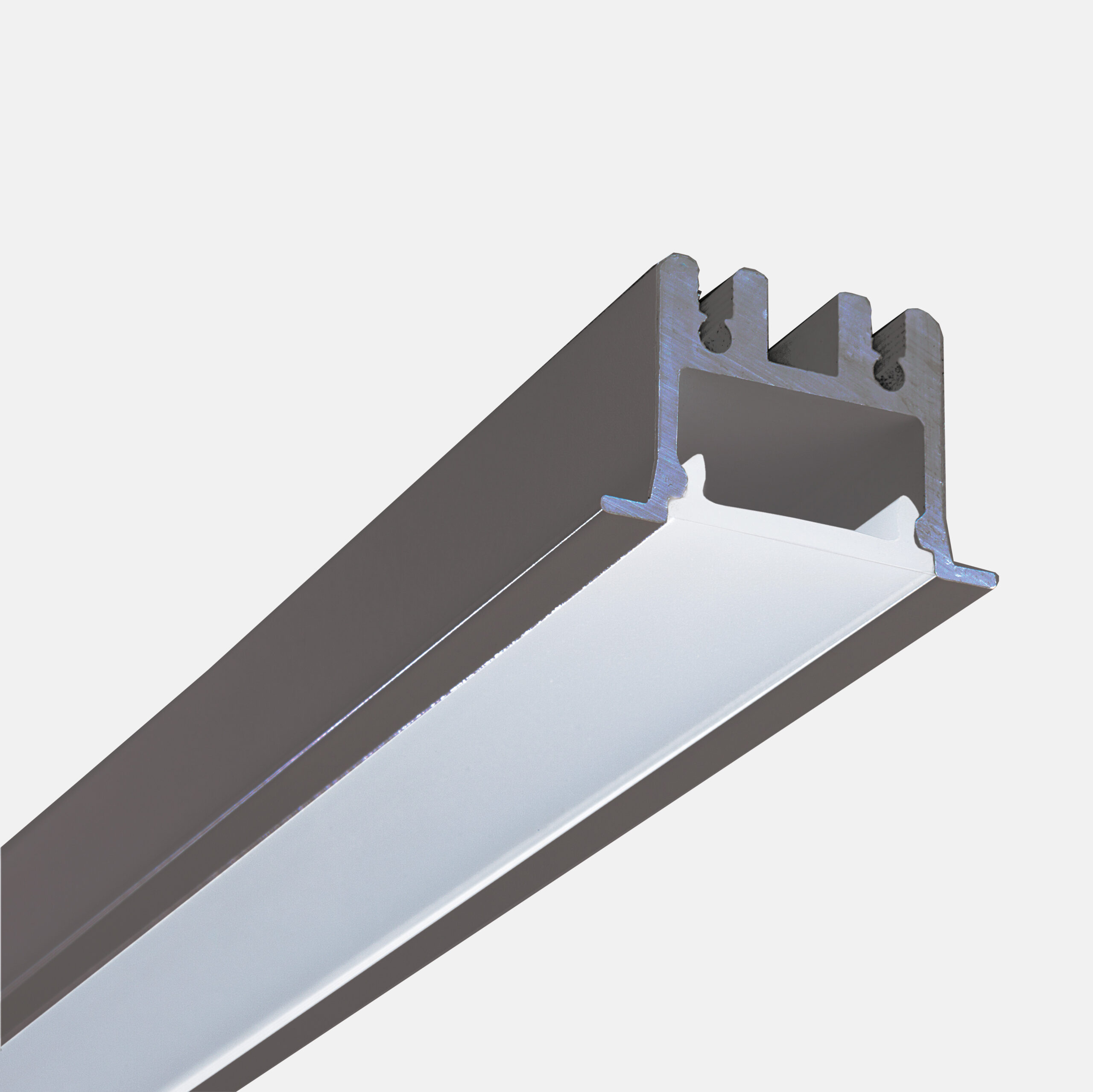 Sistema modulare per illuminazione diretta, diffusa, composto da profili vuoti in estruso di alluminio verniciato o anodizzato disponibili in lunghezze predefinite o ordinabili a misura disponibili nelle versioni a parete, soffitto, sospensione, incasso rasato a scomparsa totale e da incasso in angoli parete interni o esterni. Testate di chiusura laterali con sistema Light Proof e di schermo diffondente in PC… read more