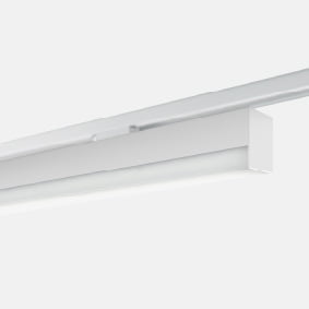 Profilo da binario Eurostandard 230V per illuminazione diretta diffusa, per sorgenti lineari LED. Alimentazione integrata, completi di adattatore Eurostandard Corpo in estruso di alluminio. Finitura verniciata o anodizzata. Schermo diffondente in PC opalino bianco. Grado di protezione IP40.