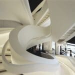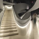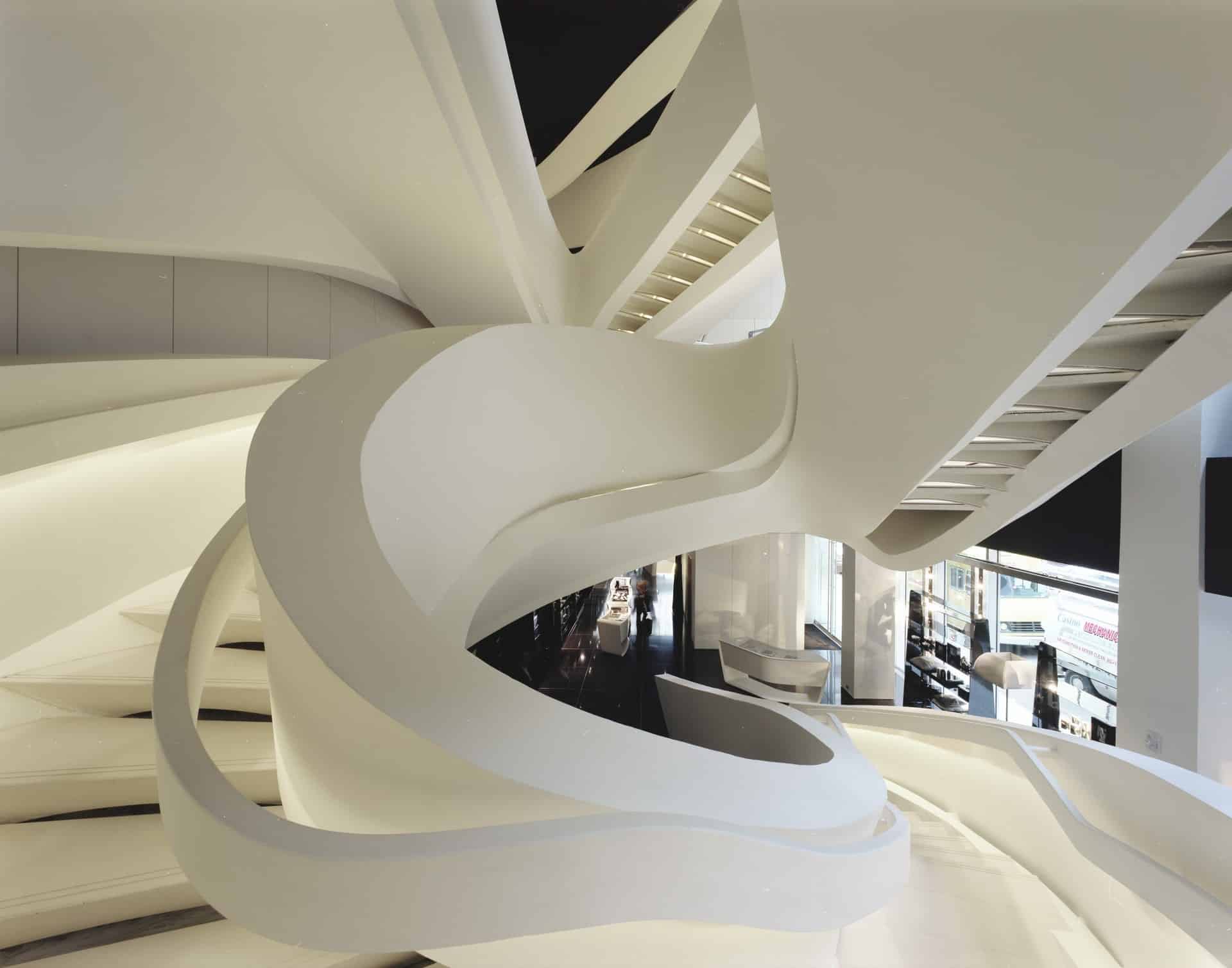 Situated in the centre of New York, in one of the world’s well known streets, the project takes up the first three floors of the two buildings located between 5th Avenue and 56th Street. Besides the basement, the showroom develops on four different levels and it is conceived as a single space, without clear distinctions, a space in harmony connected with the power generated by the vortex that is the staircase........http://it.archello.com/en/project/armani-fifth-avenue/3070885