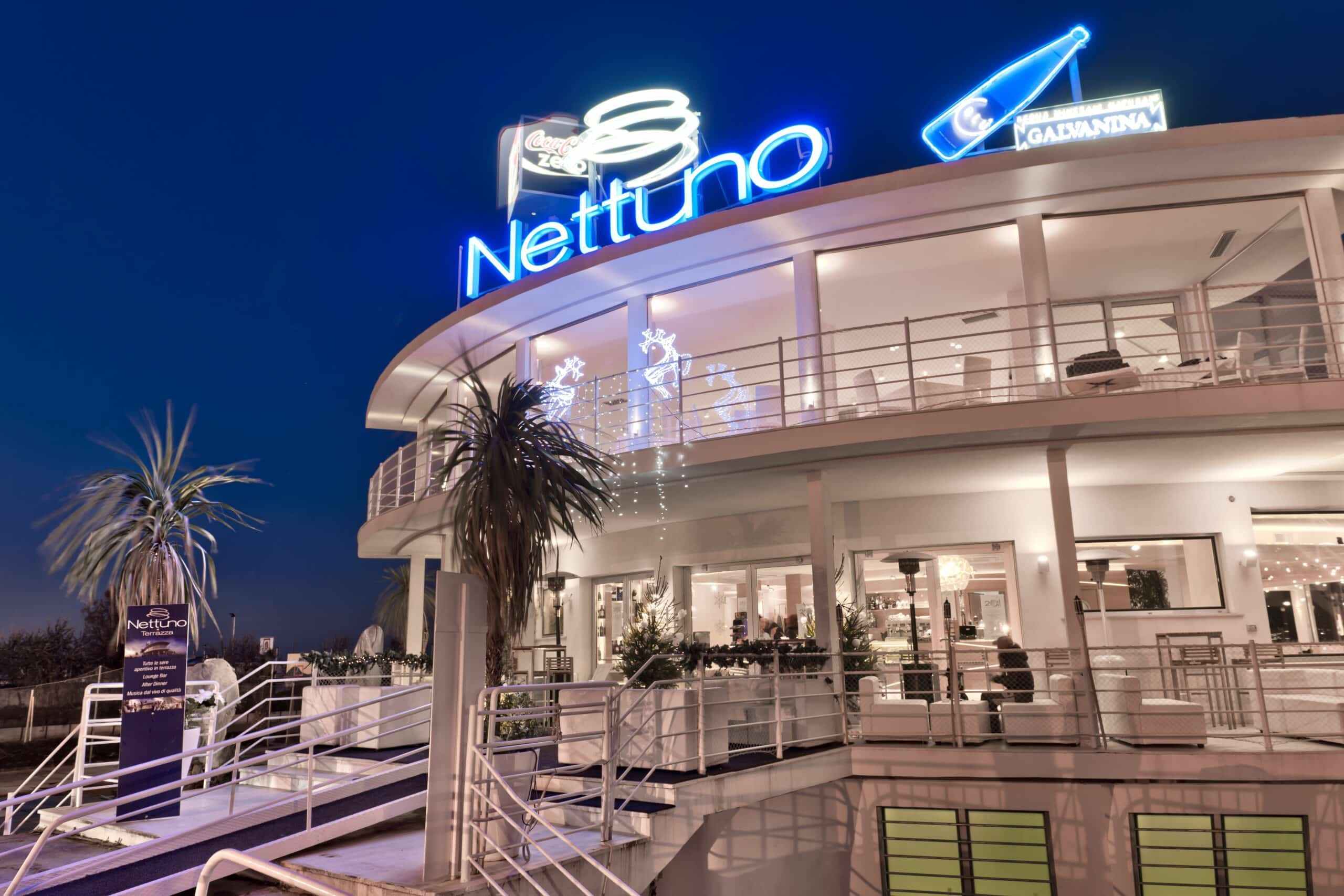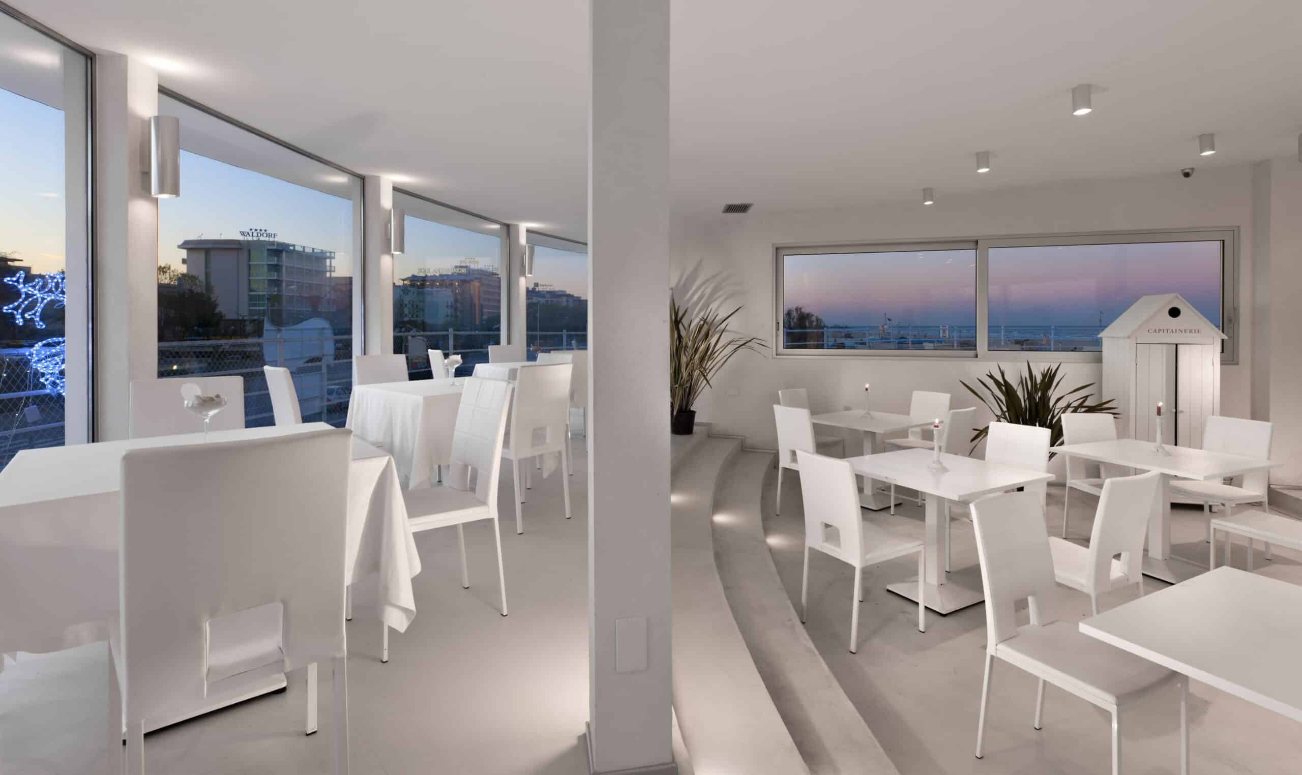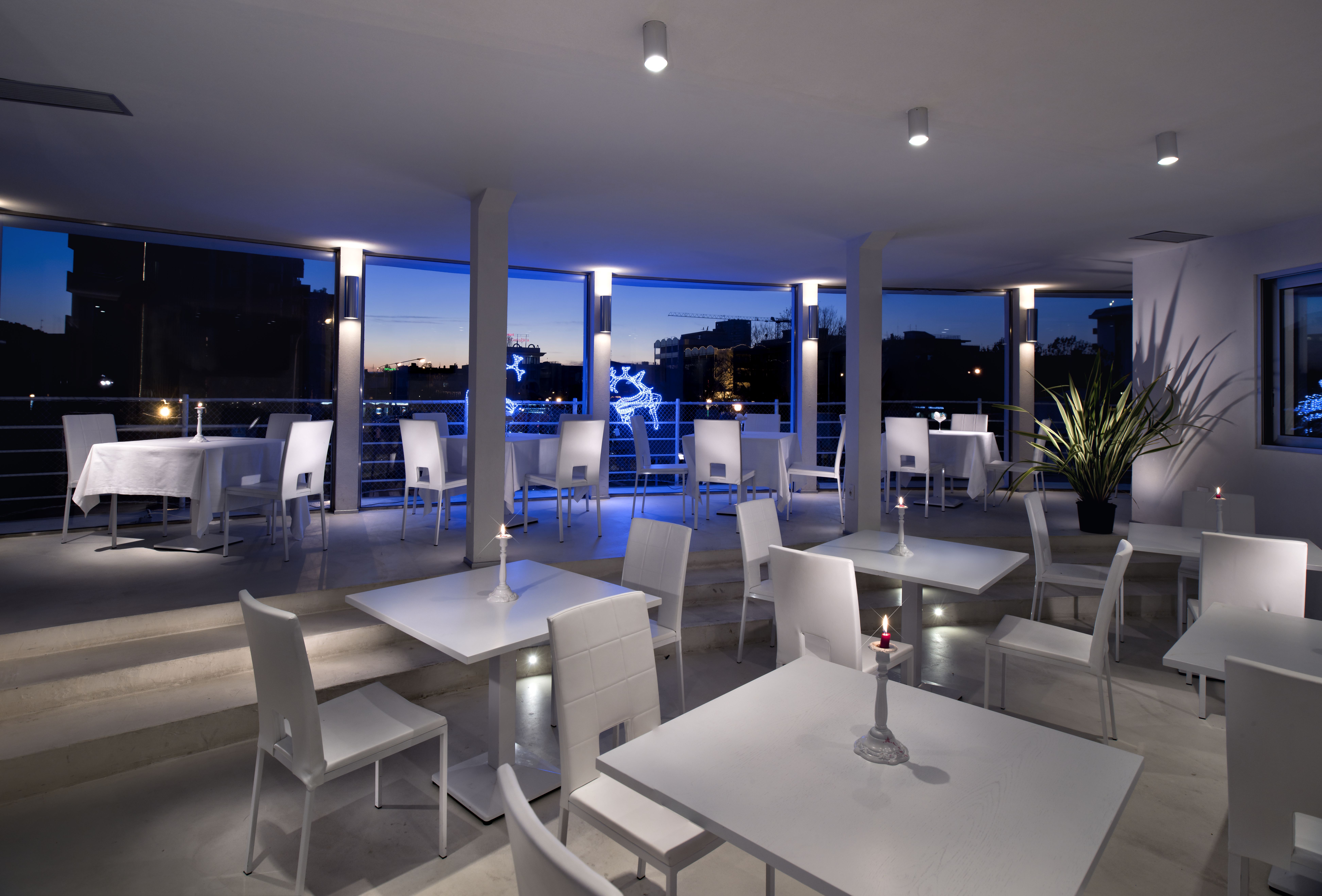 Opened in 1933, the Neptune restaurant and bar rises like a platform on the sea, with views of the coast. It has since become a locale that has hosted dancing, stage shows, exhibitions, film sets and photo shoots. At night the terrace is the “see and be seen” spot, a must for the Jet Set and tourists on holiday in Rimini. Completely restored to its original splendour thanks to the work of Architect Massimo Morandi, it reopened on the 1st of July, 2010 in his new role as a restaurant as well a space that hosts events, exhibitions and performances. It is an innovative space that retains its ageless charm. For the lighting, I-PIPEDI wall fixtures in the bi emission version in CHROME and OXIDIZED colours, and mono emission ceiling fixtures in WHITE, were perfectly integrated with the structure, with the goal of creating a pleasant ambiance for meetings and dinner parties.