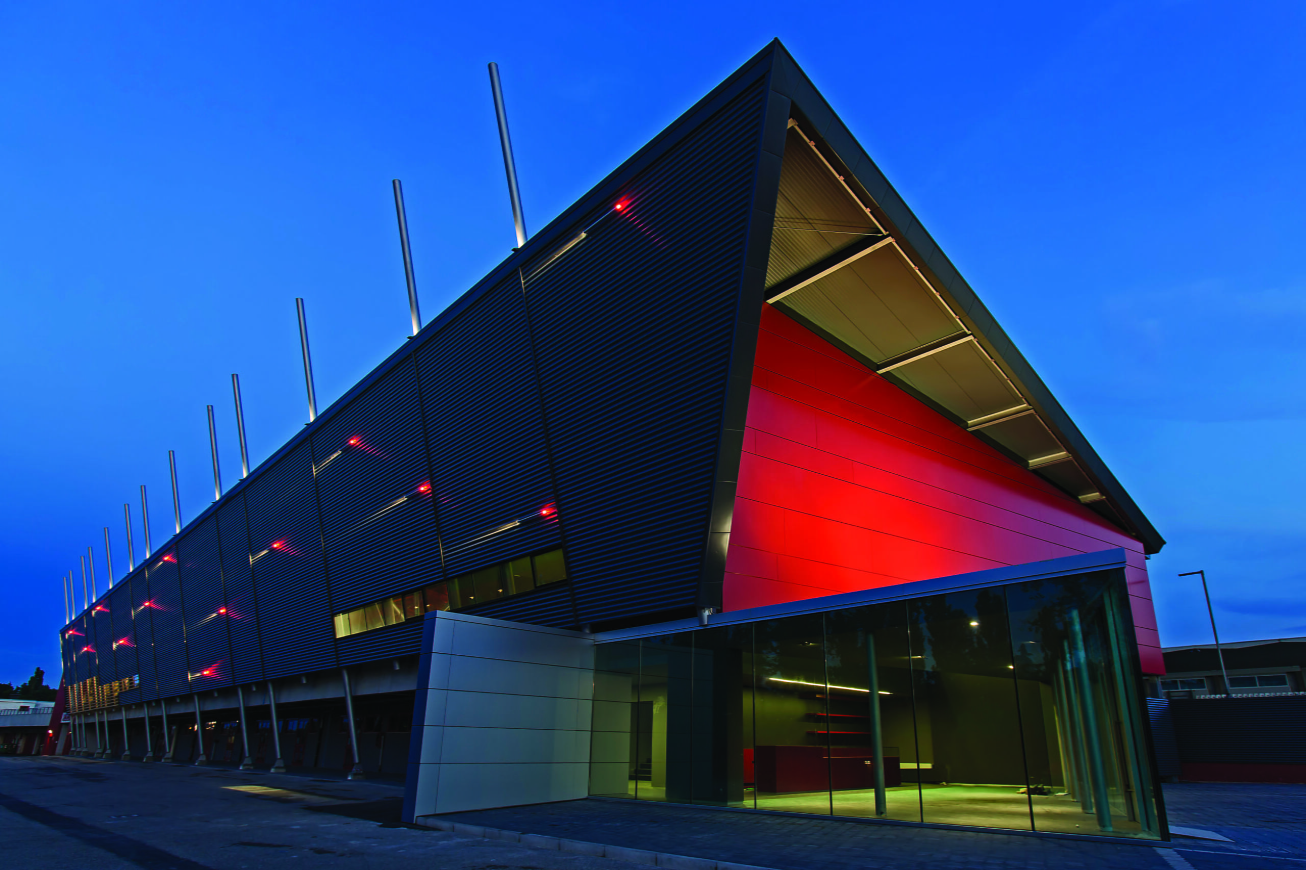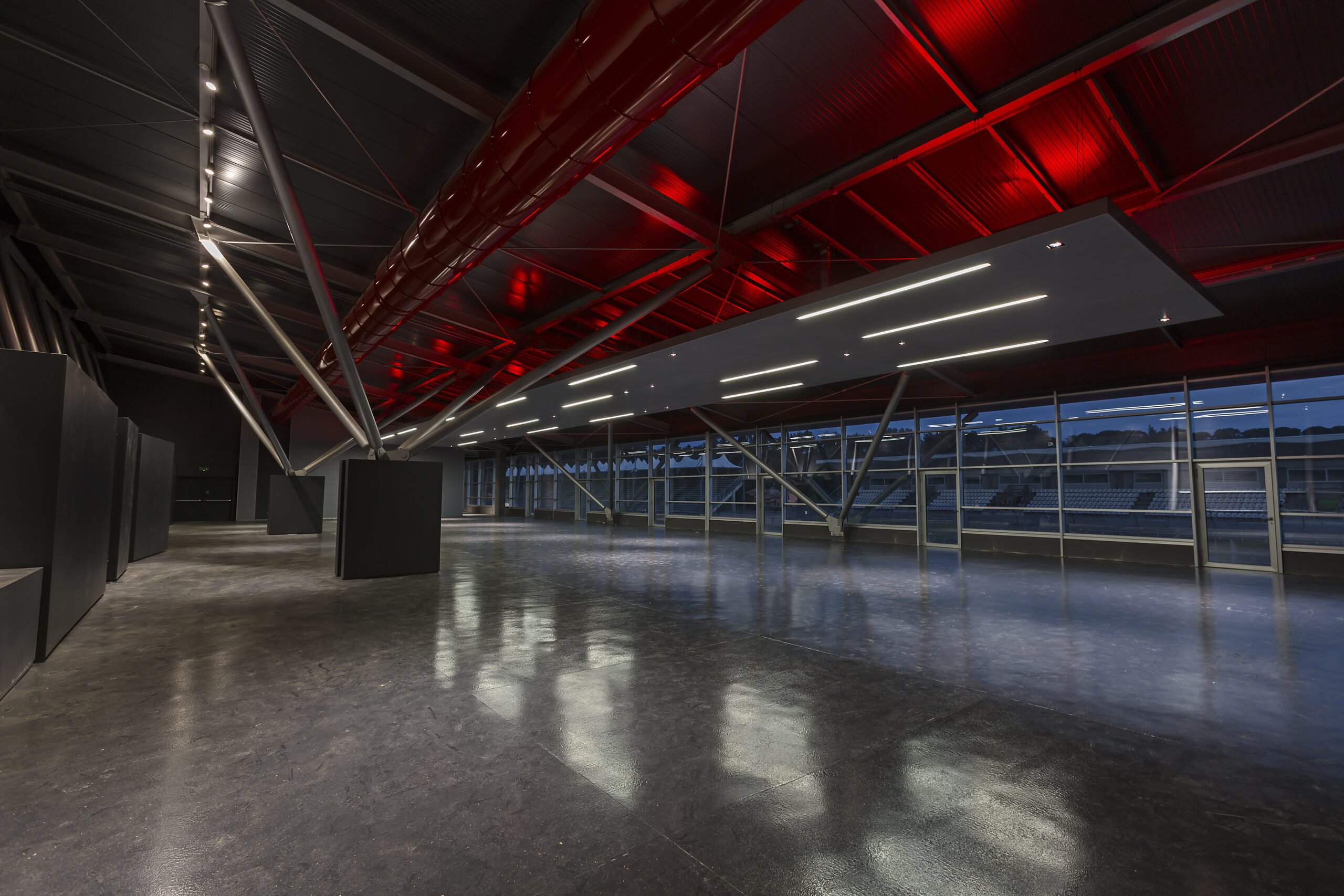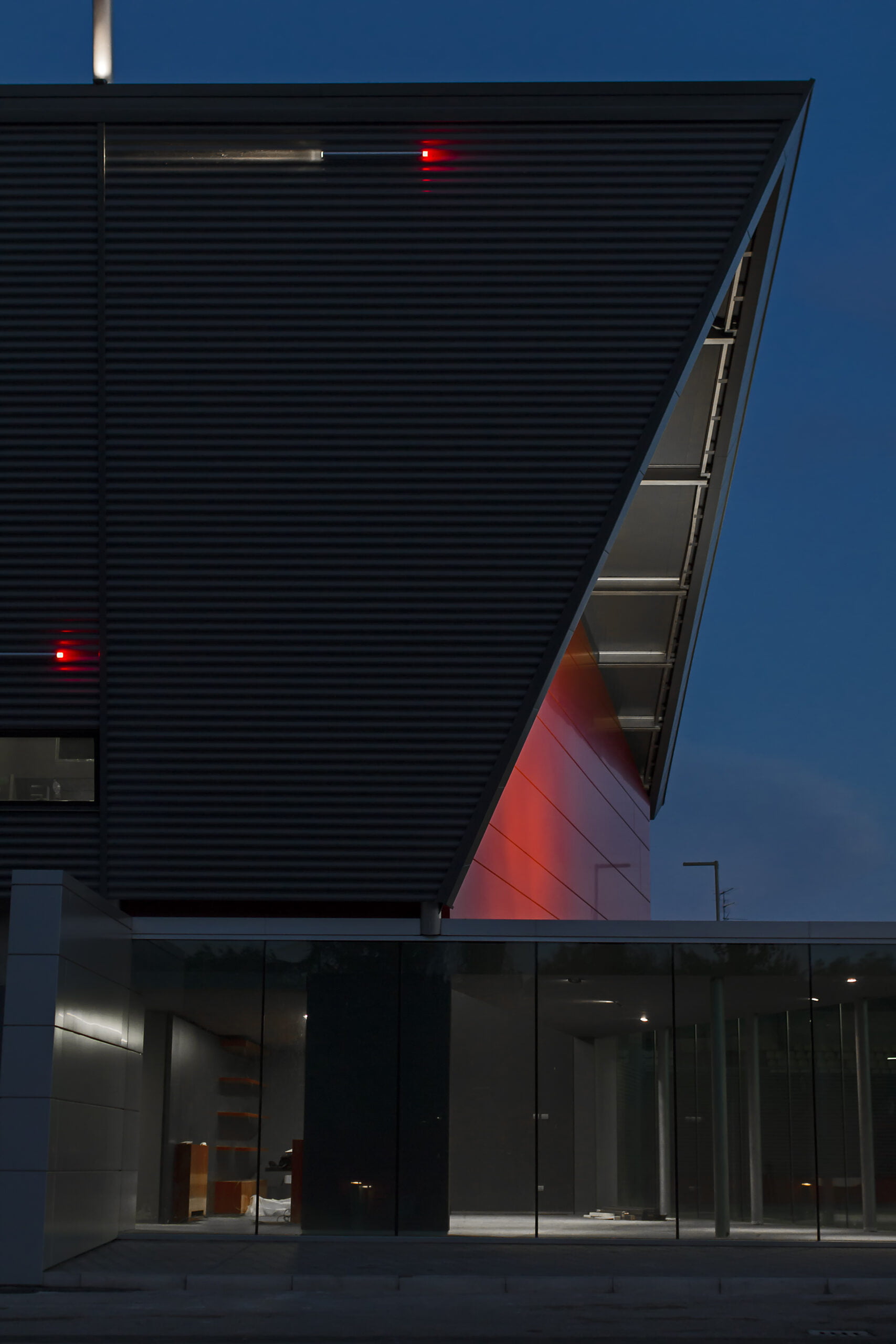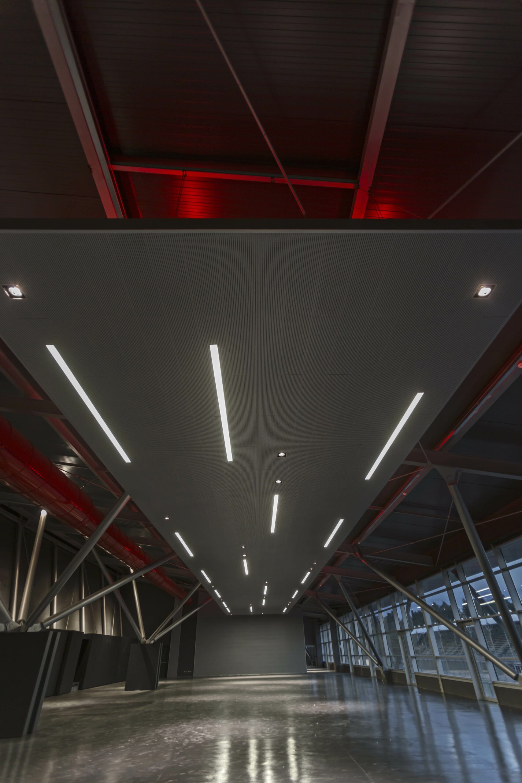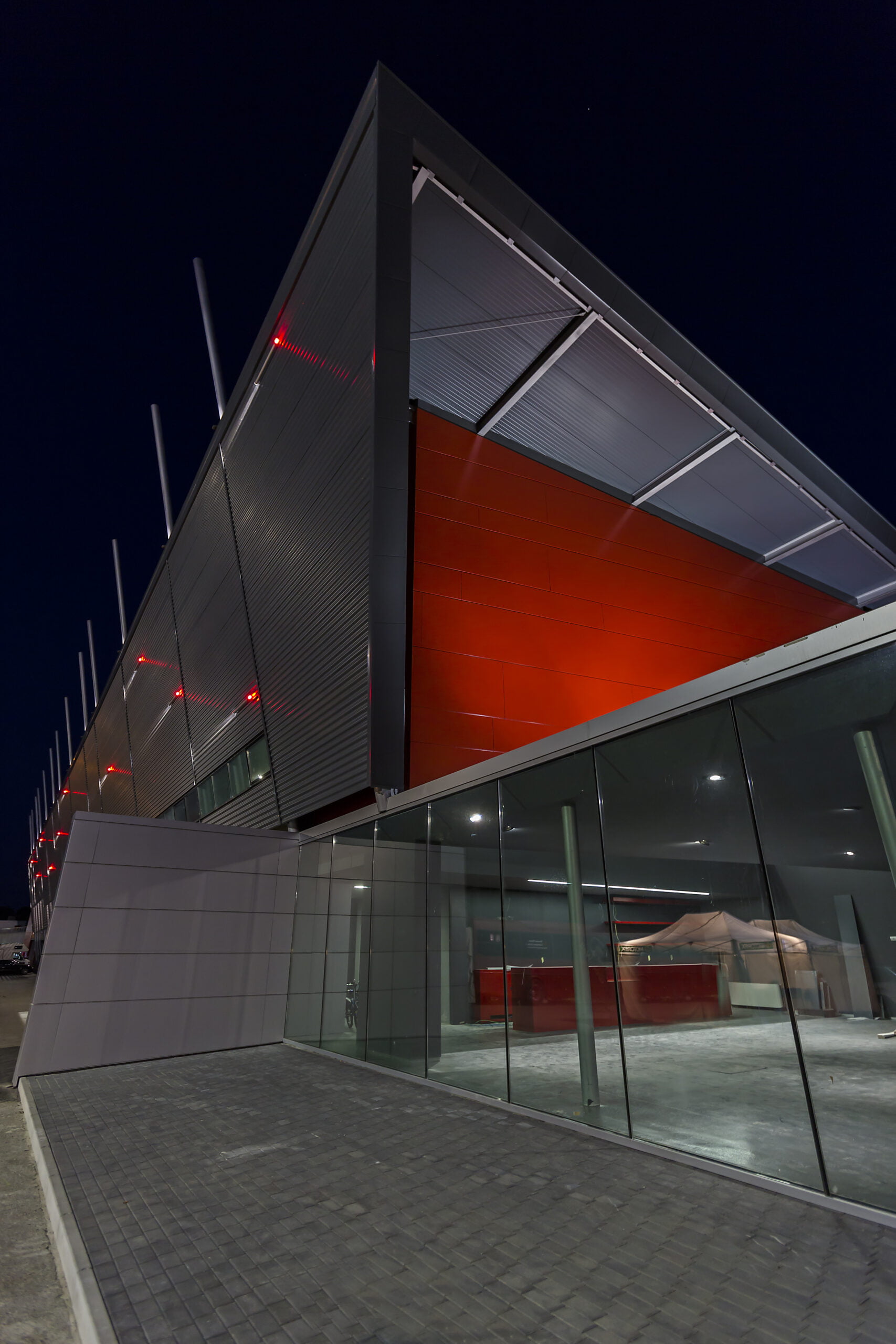 But the real challenge was the external custom projectors. We have customized these lighting solutions, adapting them perfectly to the aesthetic and expressive concept of the surrounding architecture. The choice of colours that recall the Ferrari tradition, together with the refinement of the design, has allowed to create a unique outdoor lighting of great visual impact.