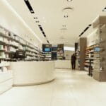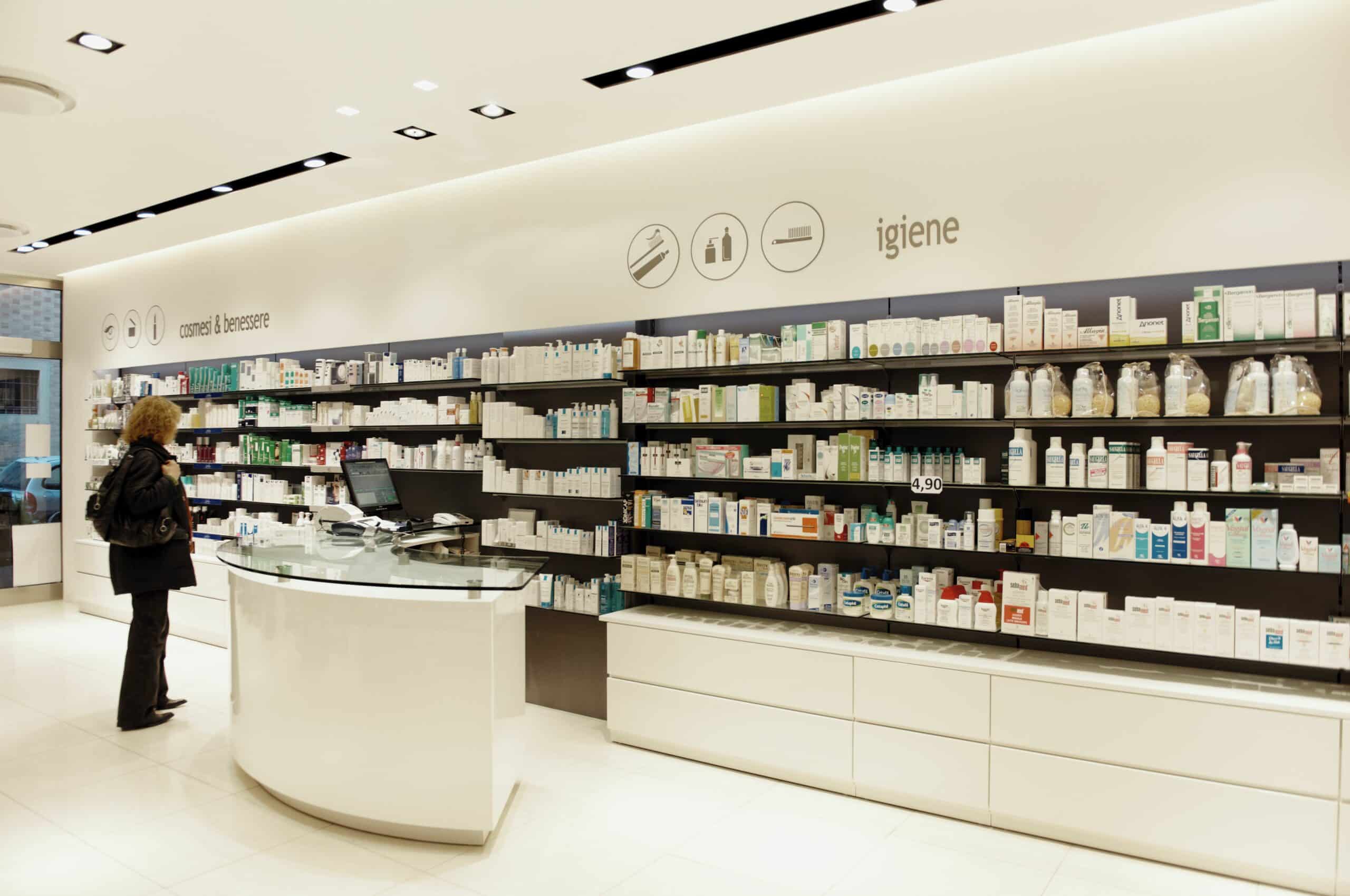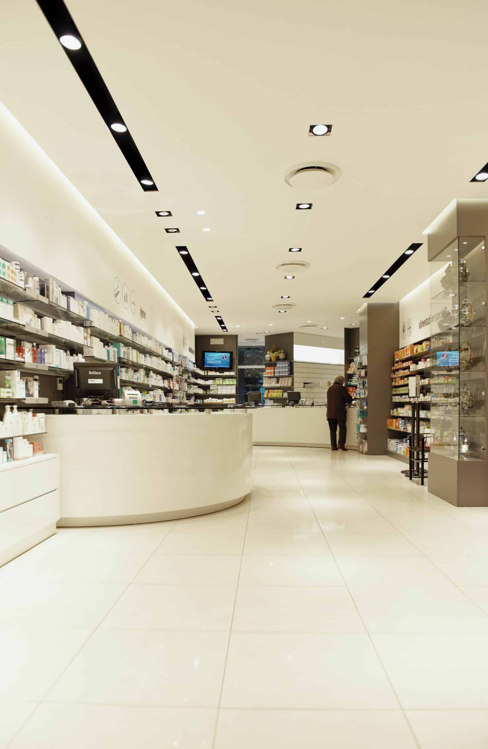 This historic pharmacy in the centre of Pesaro was recently renovated with the goal of better showcasing over-the-counter medicine as well as dermo-cosmetics. The lowered ceiling made it possible to use the recessed GUIDE system and COMPLEMENTS of the same series, as well as INCAS spots to achieve maximum visual comfort while bringing out the depth of the spaces. The GUIDE system is particularly suited to lighting pharmacies, and it is often also used in the mixed SPOT plus FLUORESCENT version.