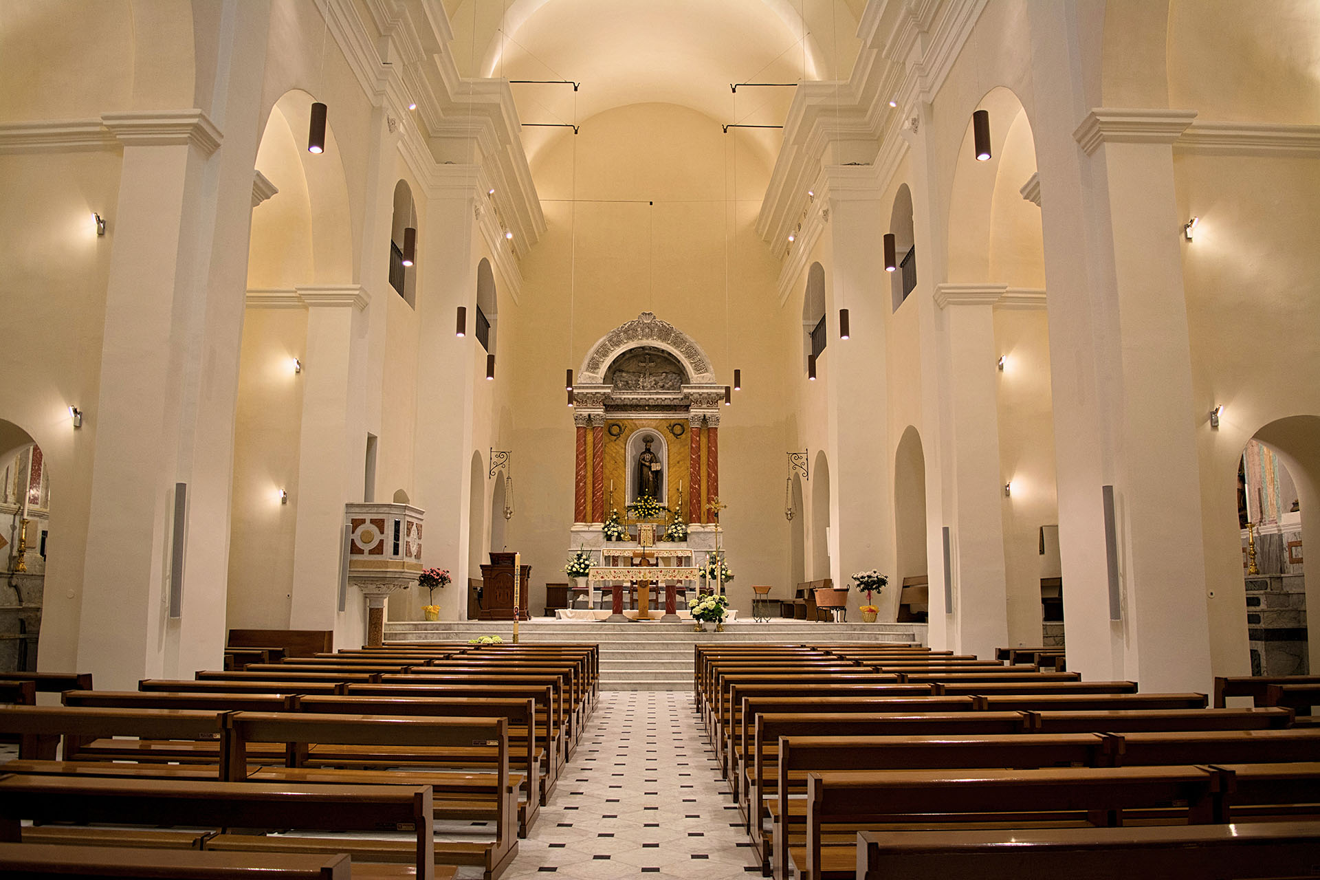The church recently underwent a major lighting renovation. The project used selected products to give the sacred building a renewed atmosphere. Ipipedi pendant luminaires in corten finish and Phar spotlights in white expertly enhanced the architecture of the church, evoking a deep sense of reverence and spirituality. This lighting solution has created an ambience that invites reflection and prayer, amplifying the sacredness of the space.