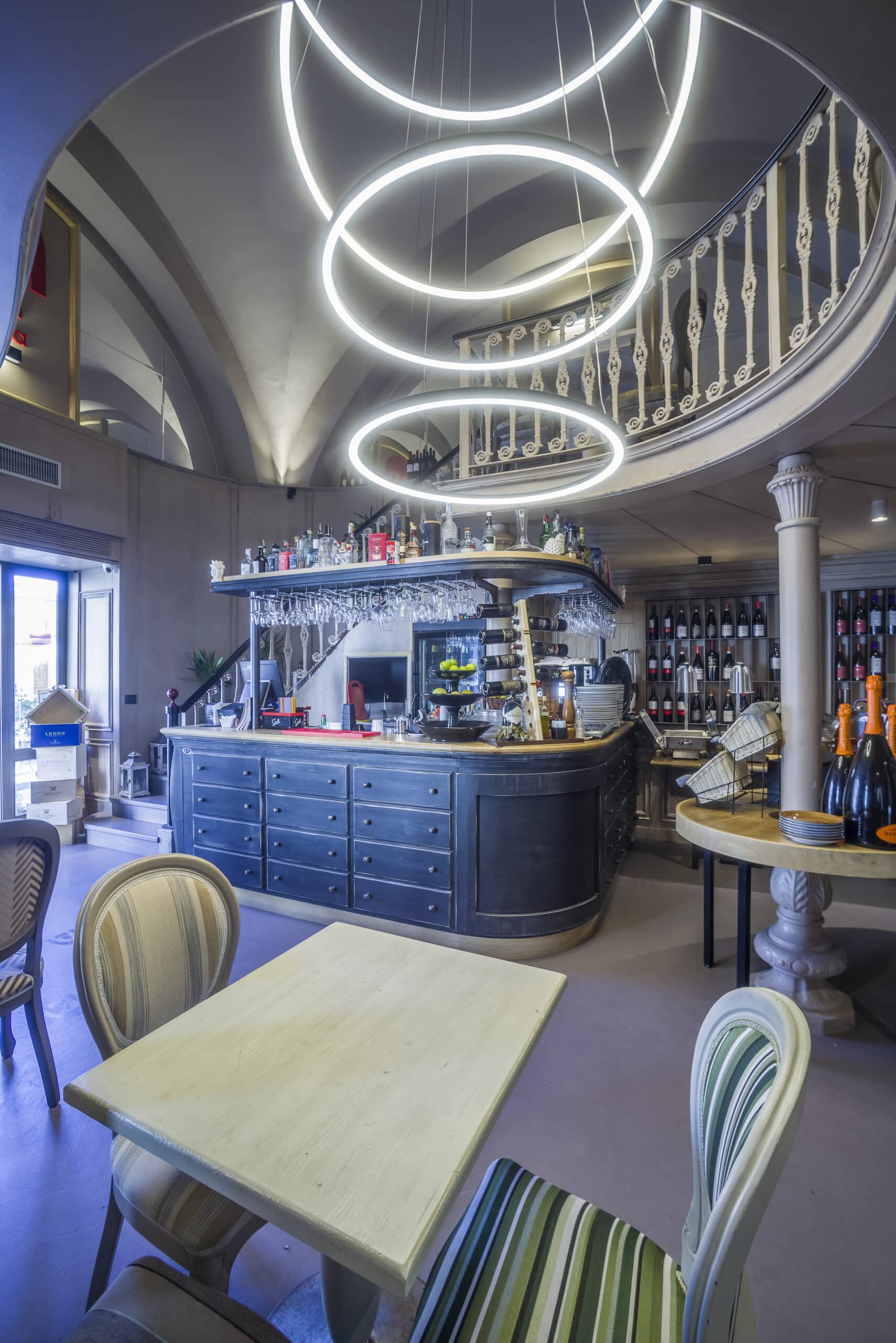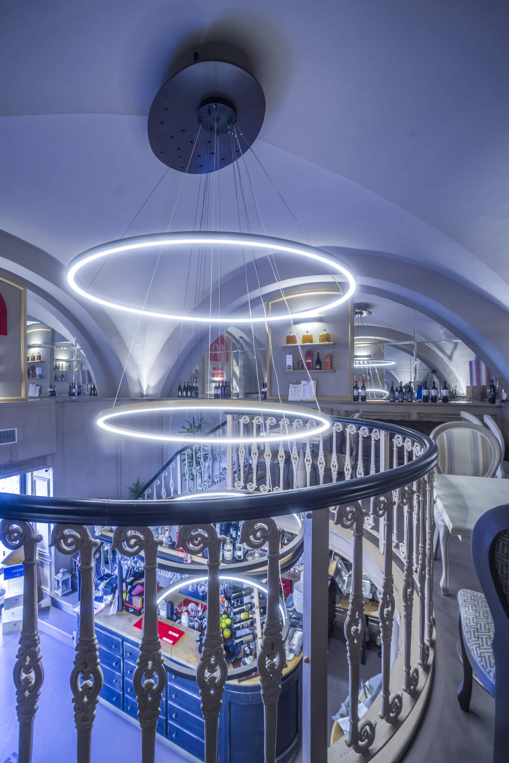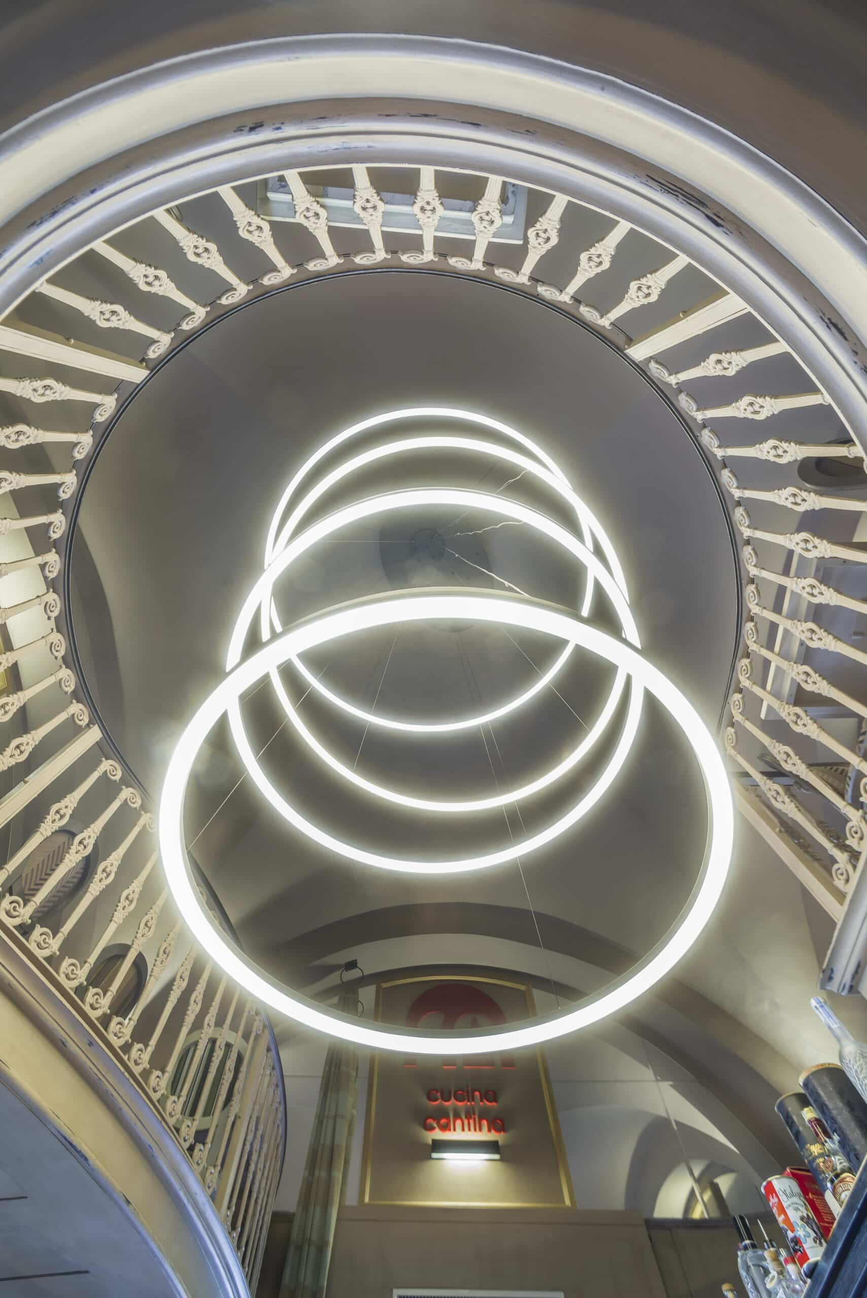 For the new layout of the Kitchen-Cellar in Cefalù, lighting was chosen with great attention to the scenographic effects where File Flex Circle is the protagonist.