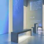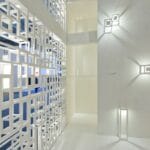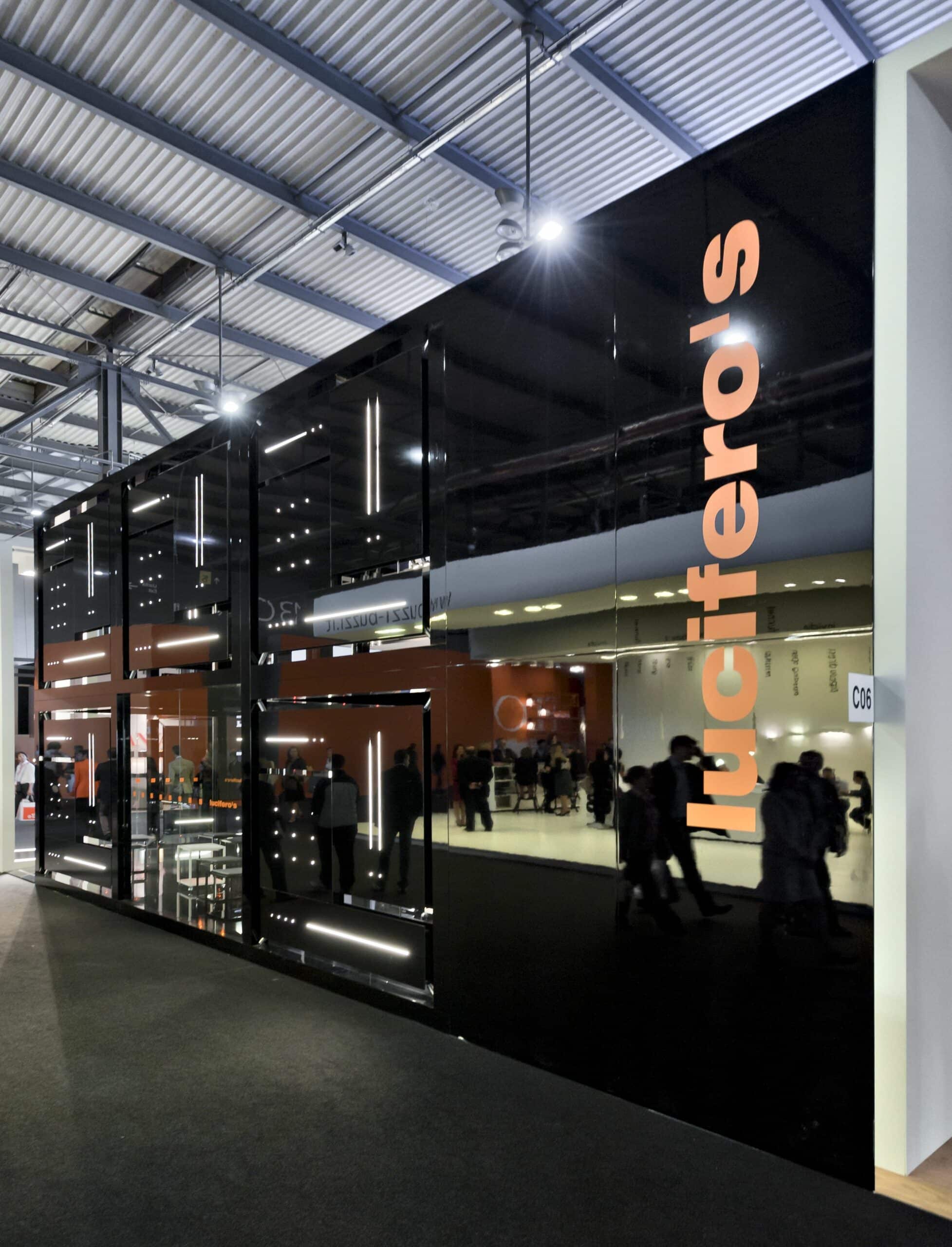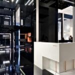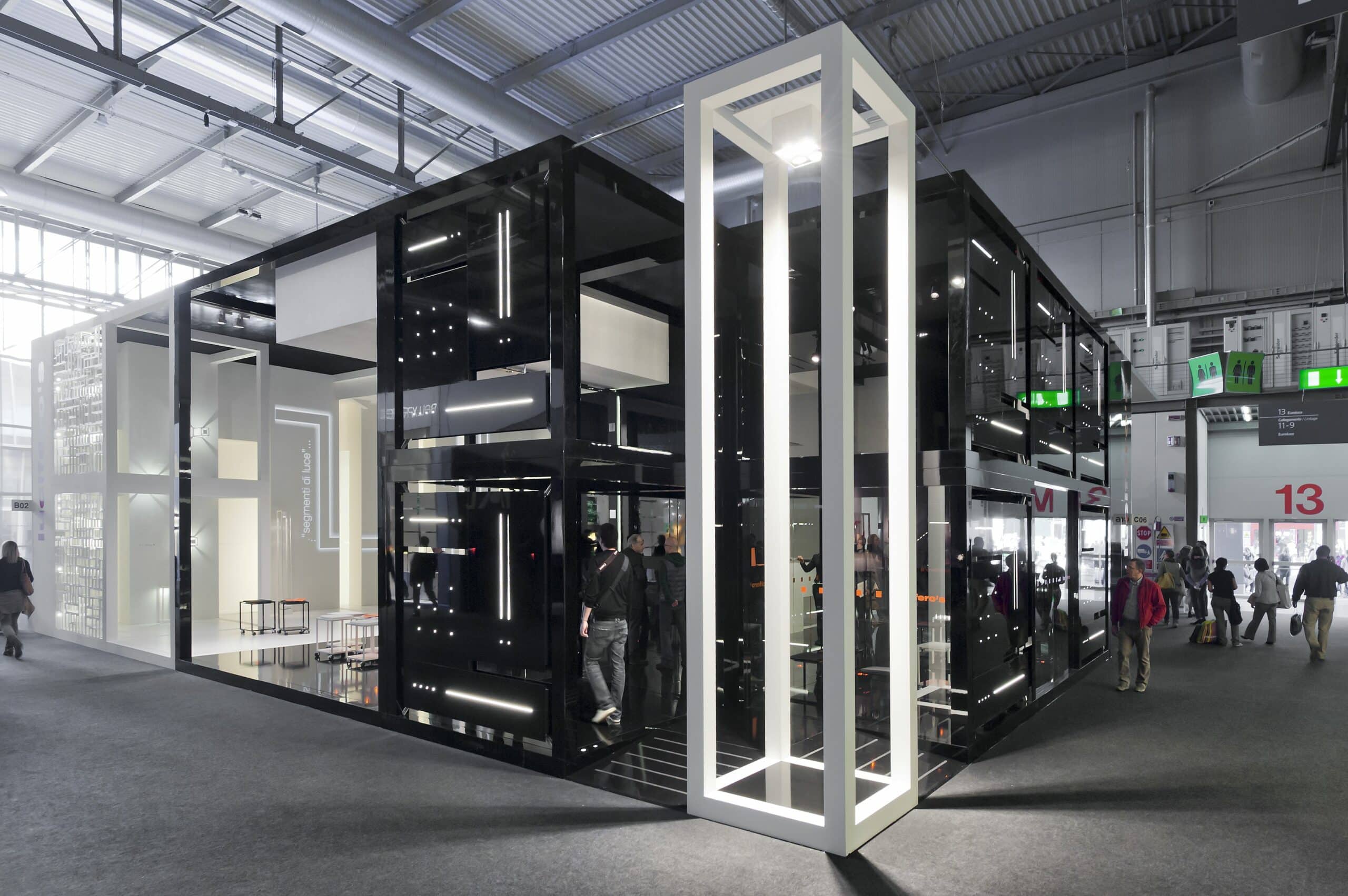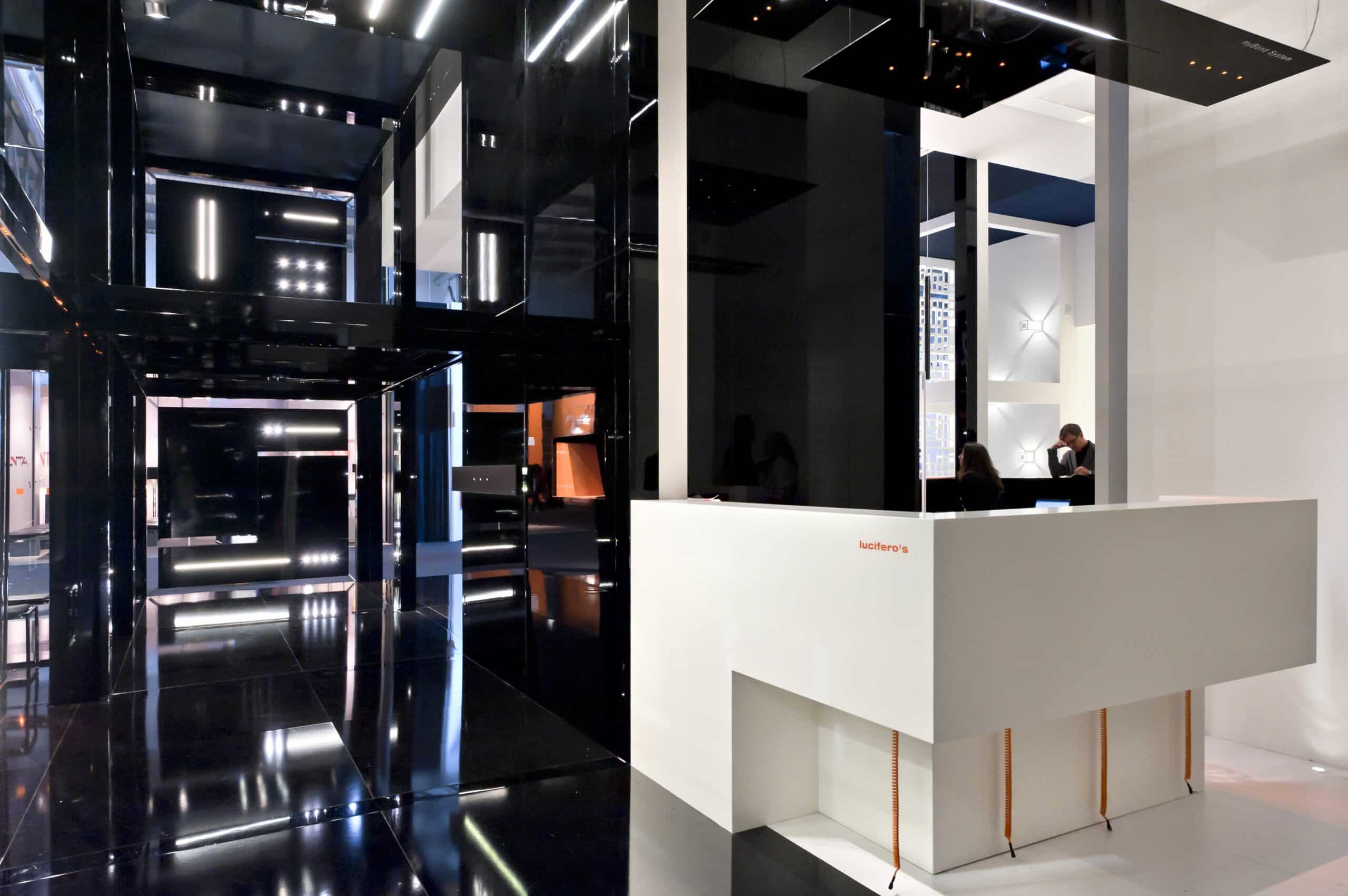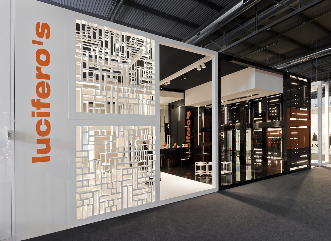 The stand is how a material trnslation of a concept, in which the products are a part of a body and they are integrated in a harmonious architecture, without any self-celebration ambition. The space is marked by clearly emotional contrasts that born from the colors white (matt) and black (glossy).