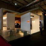 Materia, forma, colore, luce si fondono in un gioco di relazioni elementari. L’architettura torna alla forma più essenziale, più primitiva, più naturale - il trilite - quasi a ricominciare da zero alla ricerca di nuove tecnologie, di nuovi linguaggi, nuove regole compositive, nuove ispirazioni. E’ tuttavia un processo di ri-generazione, non di cancellazione o di negazione. Quello che è stato continua a far parte del nostro bagaglio e di conseguenza a tornare, anche se adeguato, rivisitato. Tre portali si intersecano a diversi livelli, creando spazi di natura e dimensione differenti, in grado di definire ambiti funzionali molto eterogenei seppur in diretta continuità. Nella materia, come nelle forme, si avvia una nuova ricerca di sperimentazione. Metallo, cemento e legno, accolti allo stato grezzo, nella loro naturale imperfezione , divengono espressione del nuovo linguaggio, della ricerca di un essenziale ricco di profondità, emozionale e danno forma a pareti, arredi e perché no, ai prodotti. Nel contesto materico, primitivo, vibrante si innestano quattro scrigni isolati, algidi, asettici, a contenere le collezioni; quasi scrigni di luce nei quali i prodotti sono “congelati” ed esaminati in modo non più emotivo ma tecnico, astratti dal