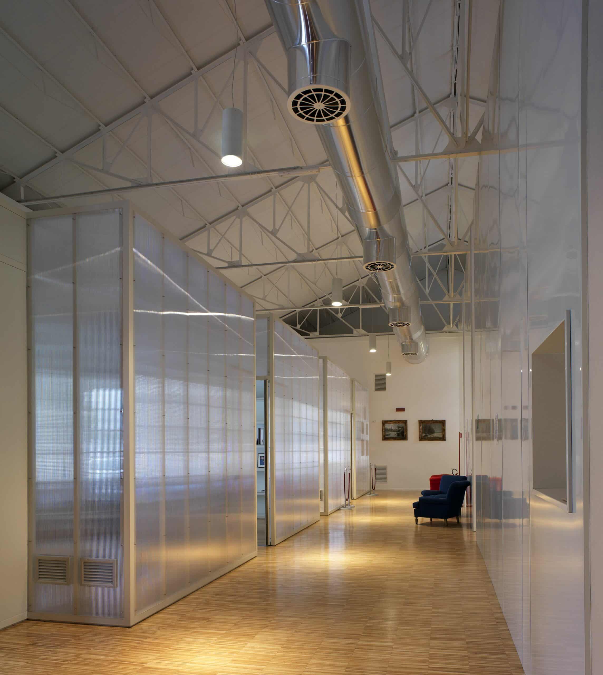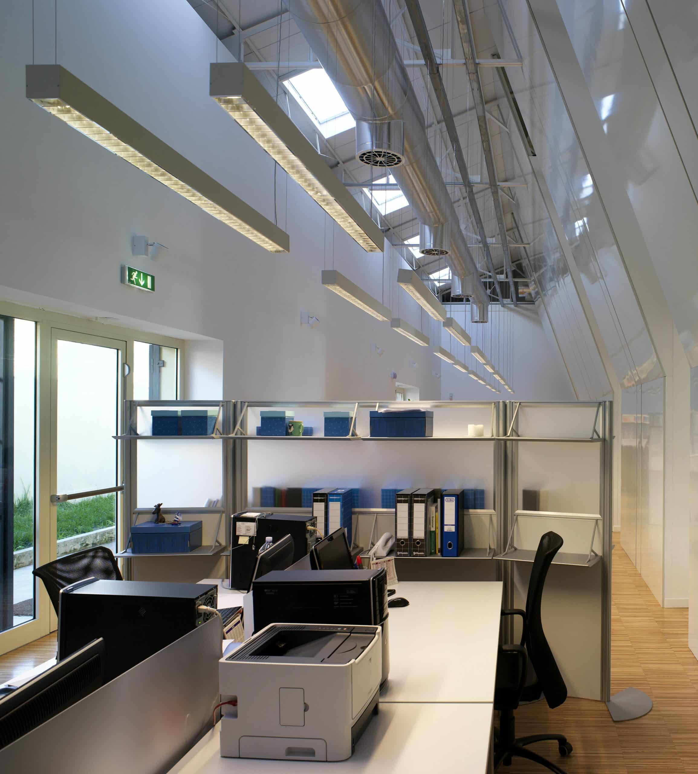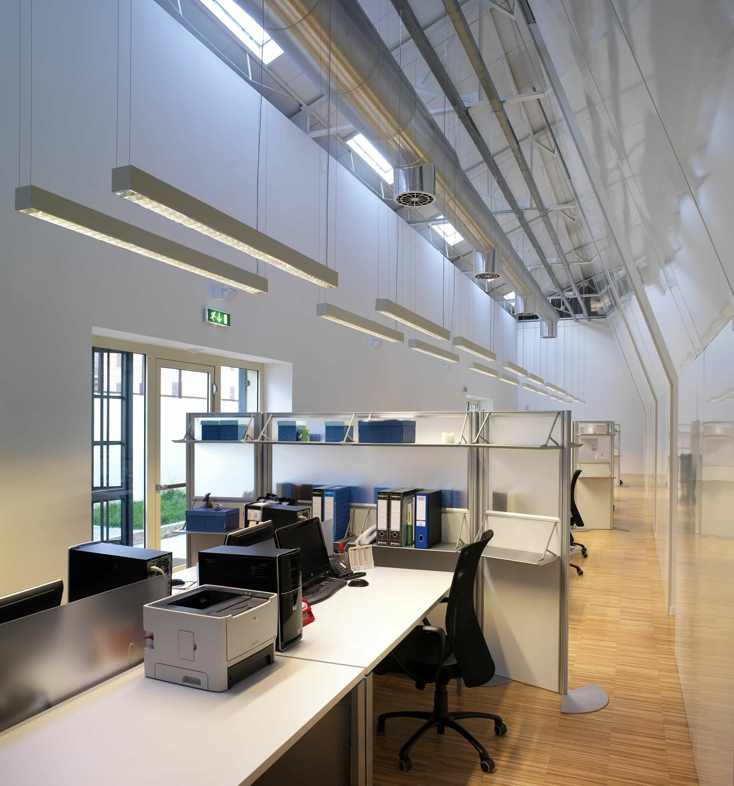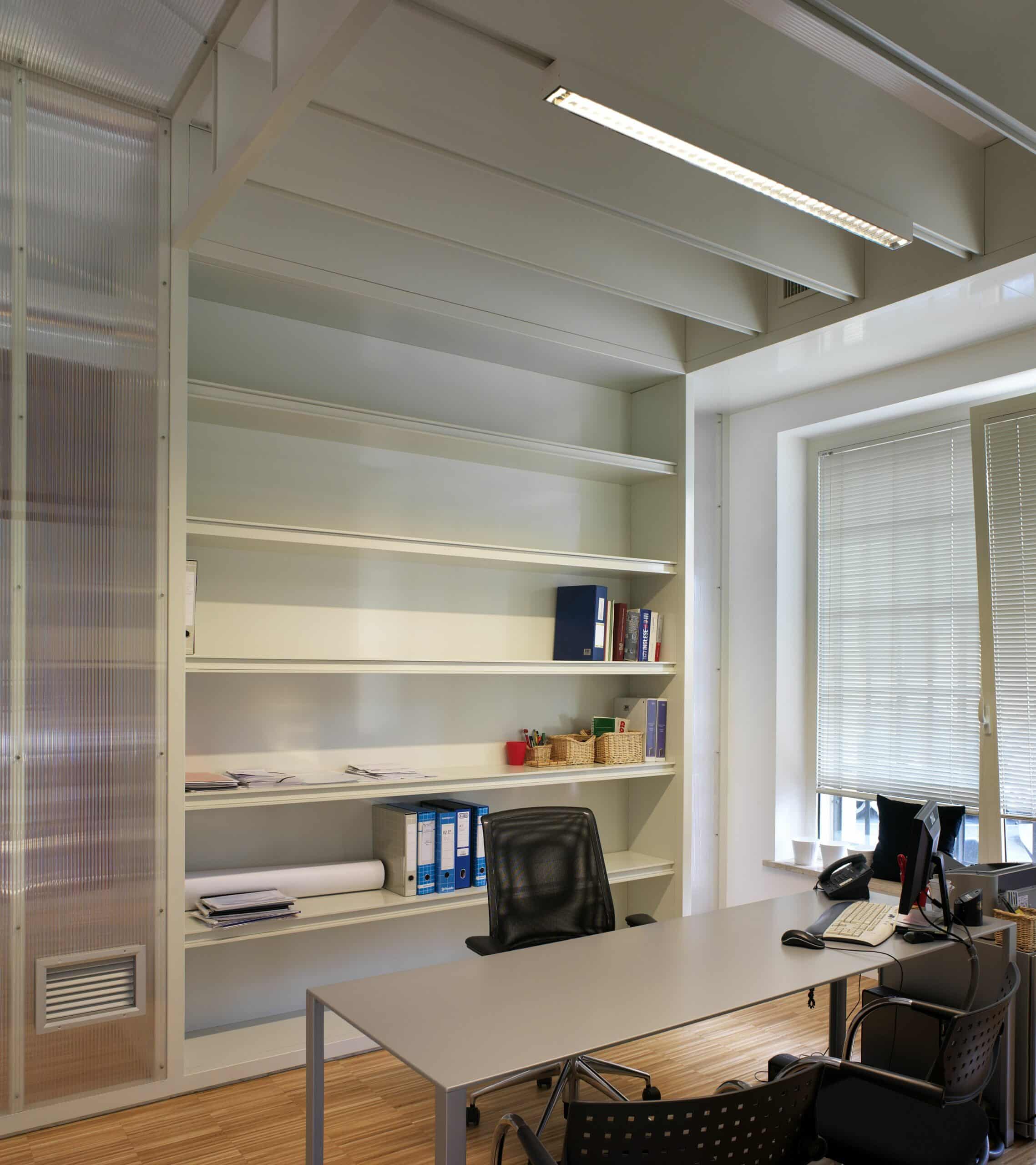 The new home of AIL was built in the former Pantanella Mills complex in Rome, including offices and a large auditorium. For the offices, the FILE2 suspensions were selected along with the wall-mounted I-PIPEDI. In the auditorium I-PIPEDI cylinder fittings were chosen in black, the same colour of the ceiling, in order to create a "light hole" visual effect. Some of them were installed as customer versions for emergency lighting.