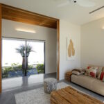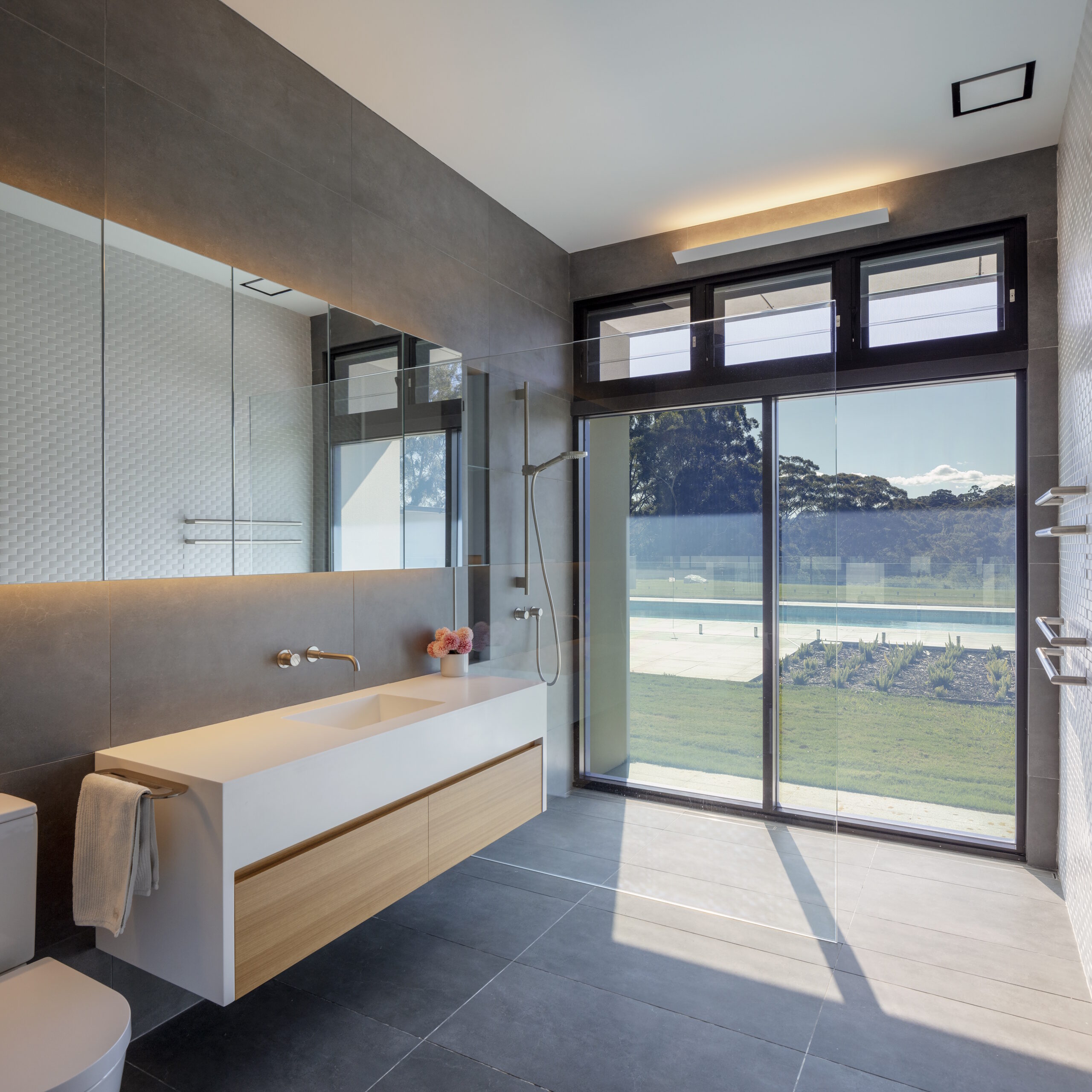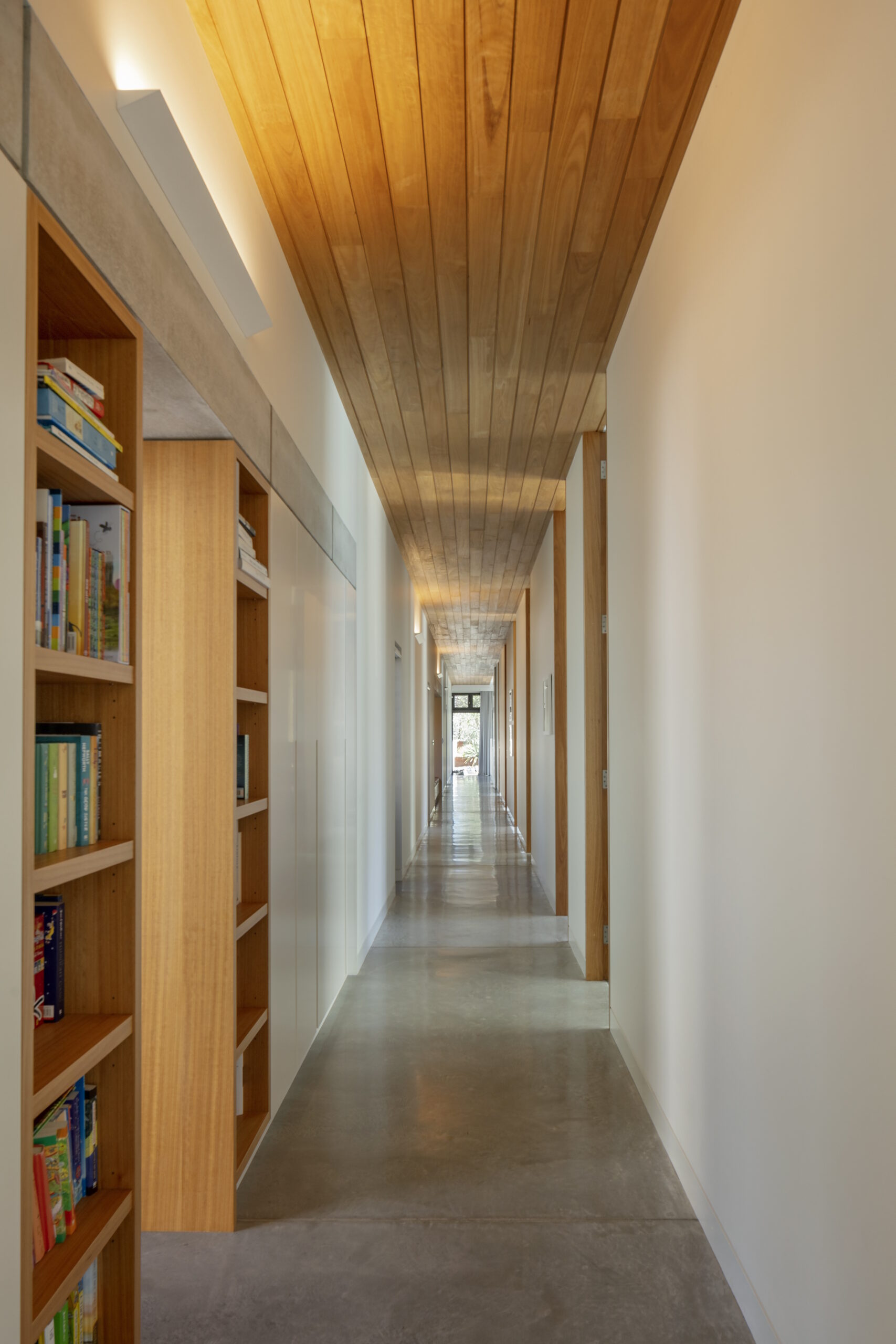 This house, designed by Richard Cole Architects on a rural property in Matcham, NSW, takes full advantage of its elevated location and breathtaking views by generously opening up to the surrounding landscape, even though it is located in an area prone to bushfires. Built to withstand the most adverse weather conditions, this resilient home features durable materials and cleverly concealed retractable shutters that act as sunshades, provide security and offer protection from fire.